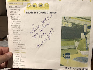 Shortly before the towers fell, my colleague Genevieve Gresham and I were seated at a table in her classroom having our picture made for the Hilton Head Elementary School website.