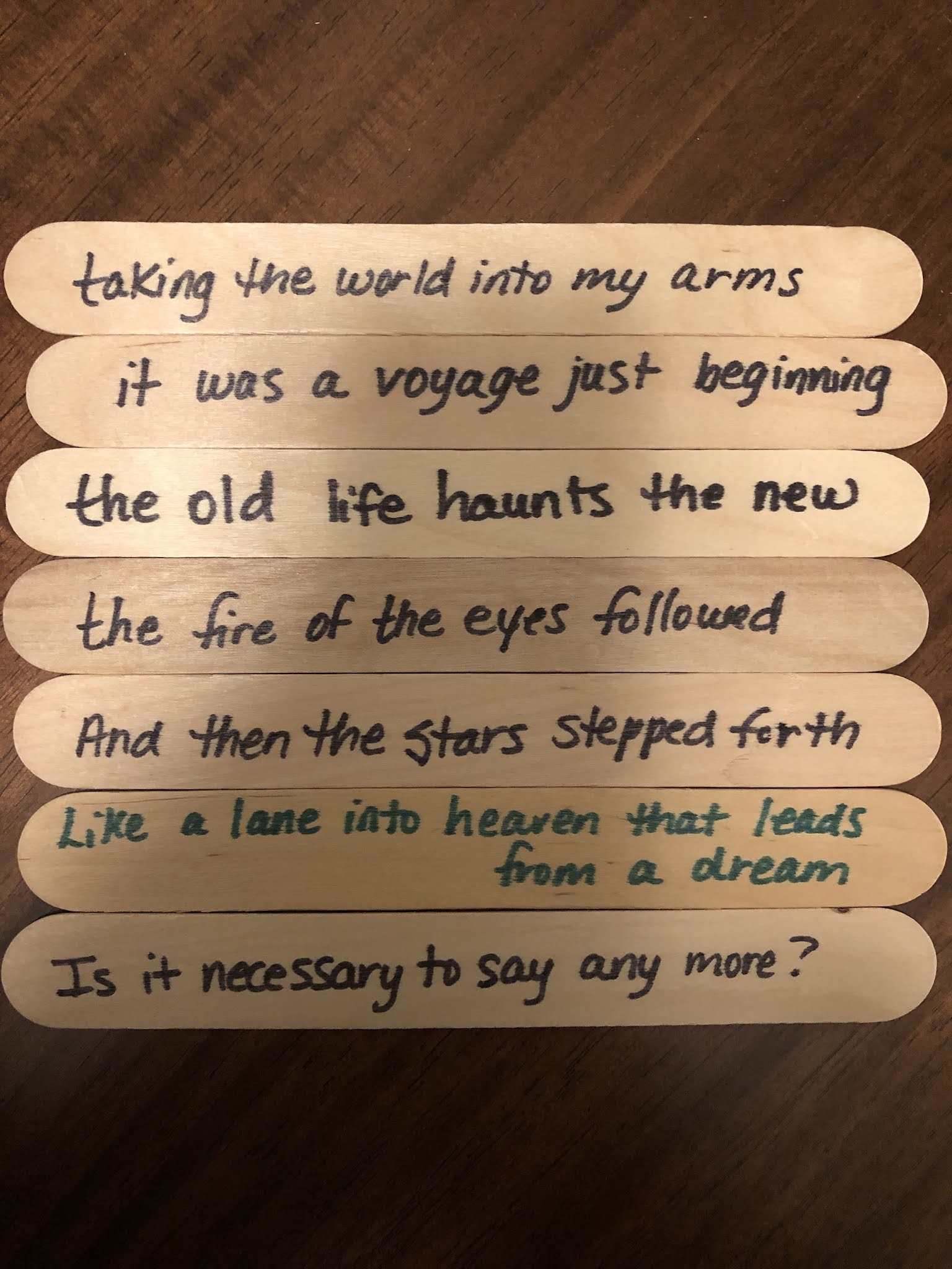 While it seems natural for them to be 26 lines–one for each letter of the alphabet, they don’t have to be. The letters can weave into however many lines work best for you and the lines can be short or long.