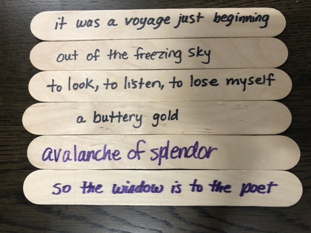 A middle school teacher asked me to work with a group of writers who enjoy creative writing. Time spent with them is the highlight of my entire week! Yesterday, we wrote what I call mashed potato poems by taking lines from existing poems to create new ones.