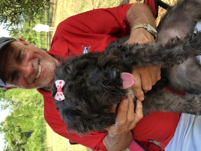 Kim fell in love with her from Albany to Tifton. I quickly fell in love with this cute little bundle of fur also. No pressure! We walked Kona and played a bit. Less than an hour later, I had a dog – or, perhaps more truthfully, a dog had me! I knew immediately I would not change her name because I love coffee (Kona is the leeward side of Hawaii where they grow coffee). She sits in the chair with me every morning when I have coffee.