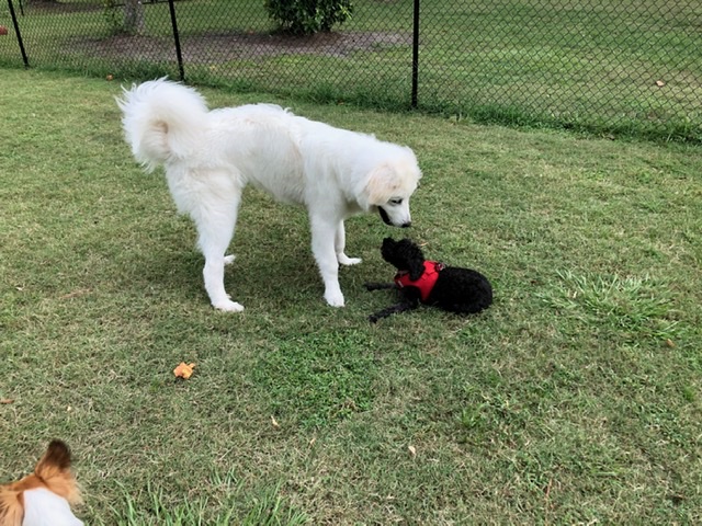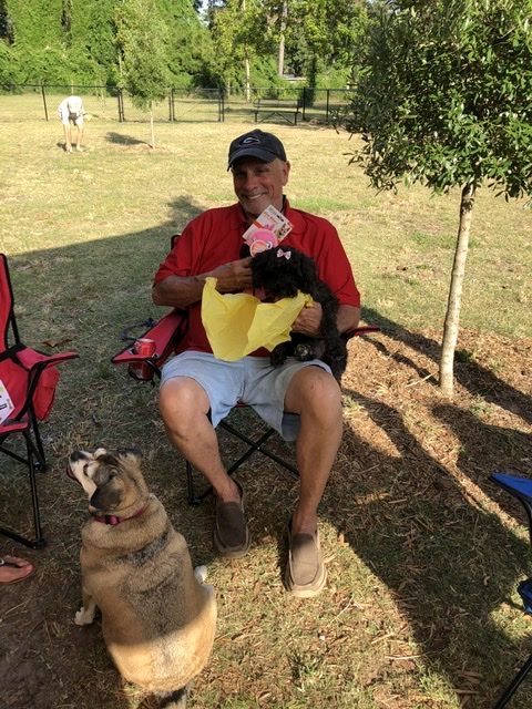 Kona is appealingly persuasive. She can win the heart of anybody she meets. She does not discriminate and brings a bright spot all over St. Simon’s Island and beyond. She gets 3 or 4 walks a day: pre-dawn (usually 5:30 a.m., to the Pier and back) — 11:00 a.m., around the ballpark (getting a treat at the Recreation Office). She pulls like a dog sled to get through that door—then, at 2:30 p.m. to the dog park. She knows how to tell time. She has dozens of friends there and has brought so many new friends into my life. We have occasional gatherings at restaurants – a great fraternity. And we meet many people and breeds of dogs from all over the country. This is an enriching dimension to my life – and Kona is responsible for it!