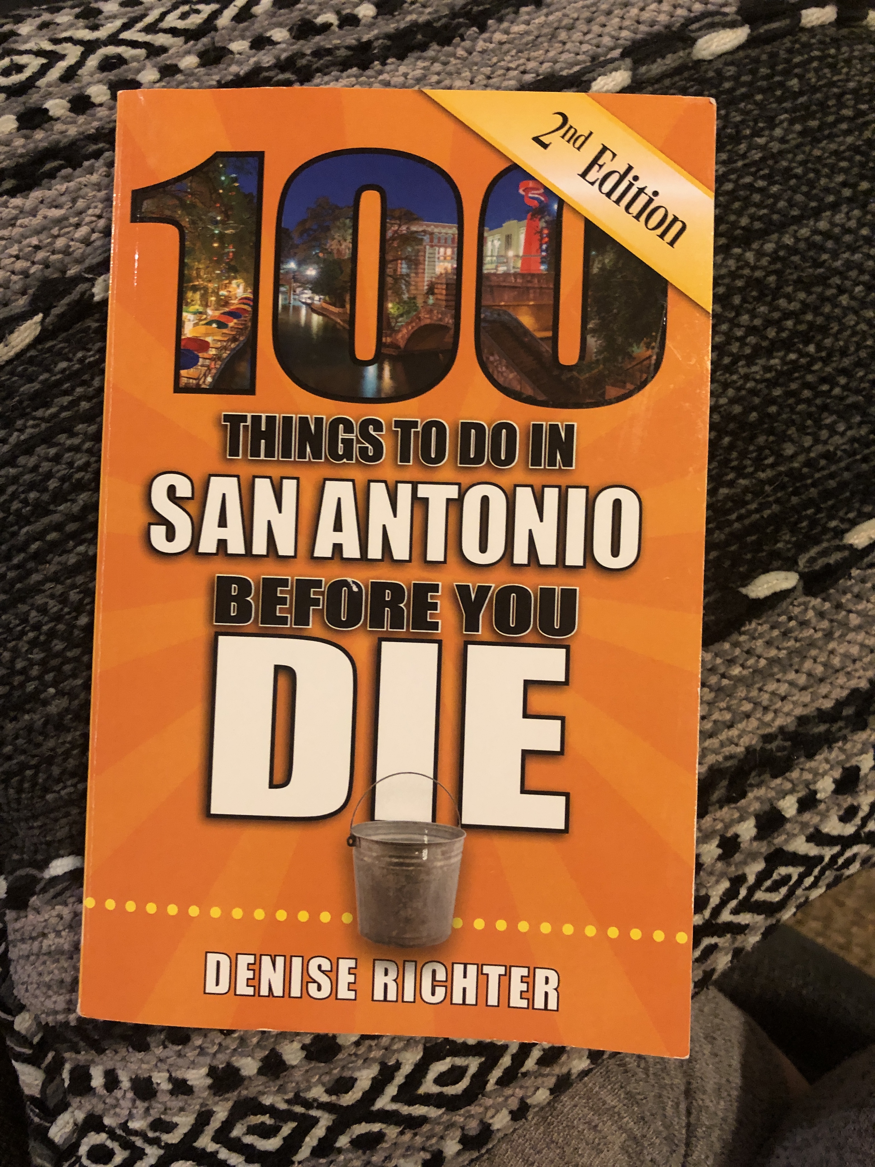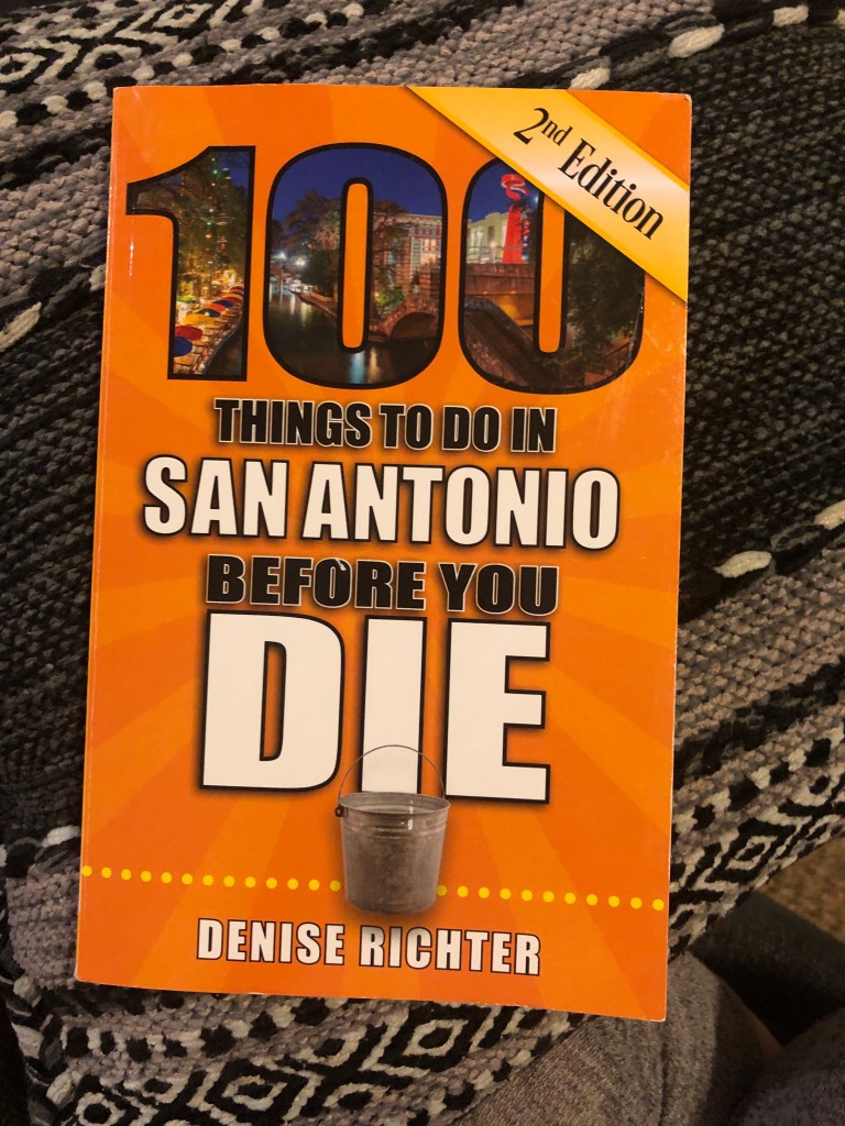 The one book I kept packed was 100 Things to Do in San Antonio Before You Die by Denise Richter. I planned to make careful notes in the book and then pass it along to a friend who will be traveling to San Antonio this summer. I was packed and ready – new black underwear neatly tucked into a semi-secret suitcase pocket, new camera fully charged – my eyes and camera lens wide open, my ears ready to listen for lessons awaiting me on this journey.
