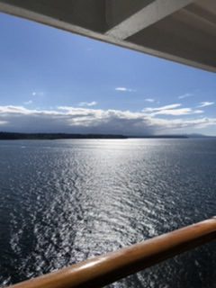 As we embarked on the cruise portion of our trip yesterday, I did what I always do from distant places. I looked to the sky and determined location based on the sun’s position and knowledge of landmarks on the map. Turning my head to the southeast and south/southeast skies of my children and family members in South Carolina, Georgia, Tennessee, and Nevada, I found a bird over the skies of Puget Sound and imagined her spreading her wings, flying toward home to check on things there. I looked in the direction of my loved ones and checked to be sure there were no asteroids headed toward Earth so I could rest assured that my people were all safe before we set sail. And then I took in the exquisite views of Seattle from the deck of a ship.