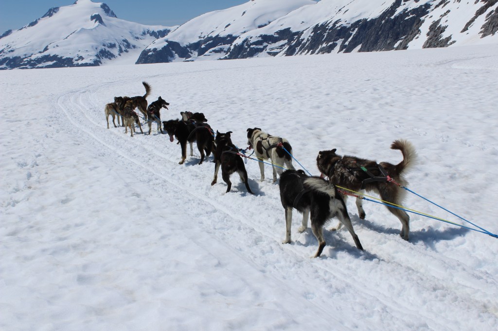 It’s probably a little-known fact that sled dogs poop on the run, but it comes as a bit of a jolt when you’re in the lead sled seat and discover it for yourself. They do. They’re trained that way, and the next generation of Iditarod dogs is already learning this distinctive skill as they summer at Mendenhall Glacier Sled Dog Summer Camp in Juneau, Alaska. We met upcoming teams of 9-week and 13-week old Huskies who will literally be following in their parents’ footsteps.