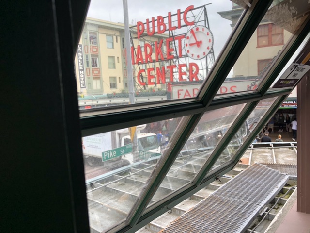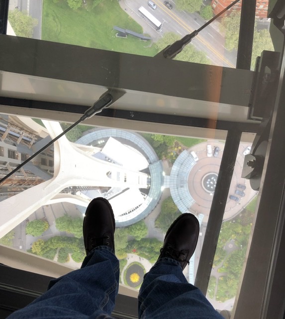 Seattle is a scenic city, full of fun and ready to be explored. We went to Pike Place Market and ate in a little pub and grill for lunch. The smoked salmon salad was out of this world. I’ve abandoned all possibilities of sticking to a sodium count in any acceptable range – but I’m being mindful to make good choices given all the tasty temptations. We also went up in the Space Needle for quite the view. We walked along the glass bottom rotating platform with no squeamishness whatsoever. Then we headed back and had dinner in a little Greek restaurant that was out of this world good.