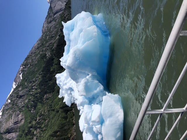Today, we look forward to the small boat tour through Tracy Arm Fjord. When I visited Alaska before, I didn’t take the small boat to get up close and personal to the glaciers to experience the calving and hear the thunder. I didn’t get to see the seals hanging out on the icebergs, so this has me thrilled, camera in hand, to bundle up and go.
