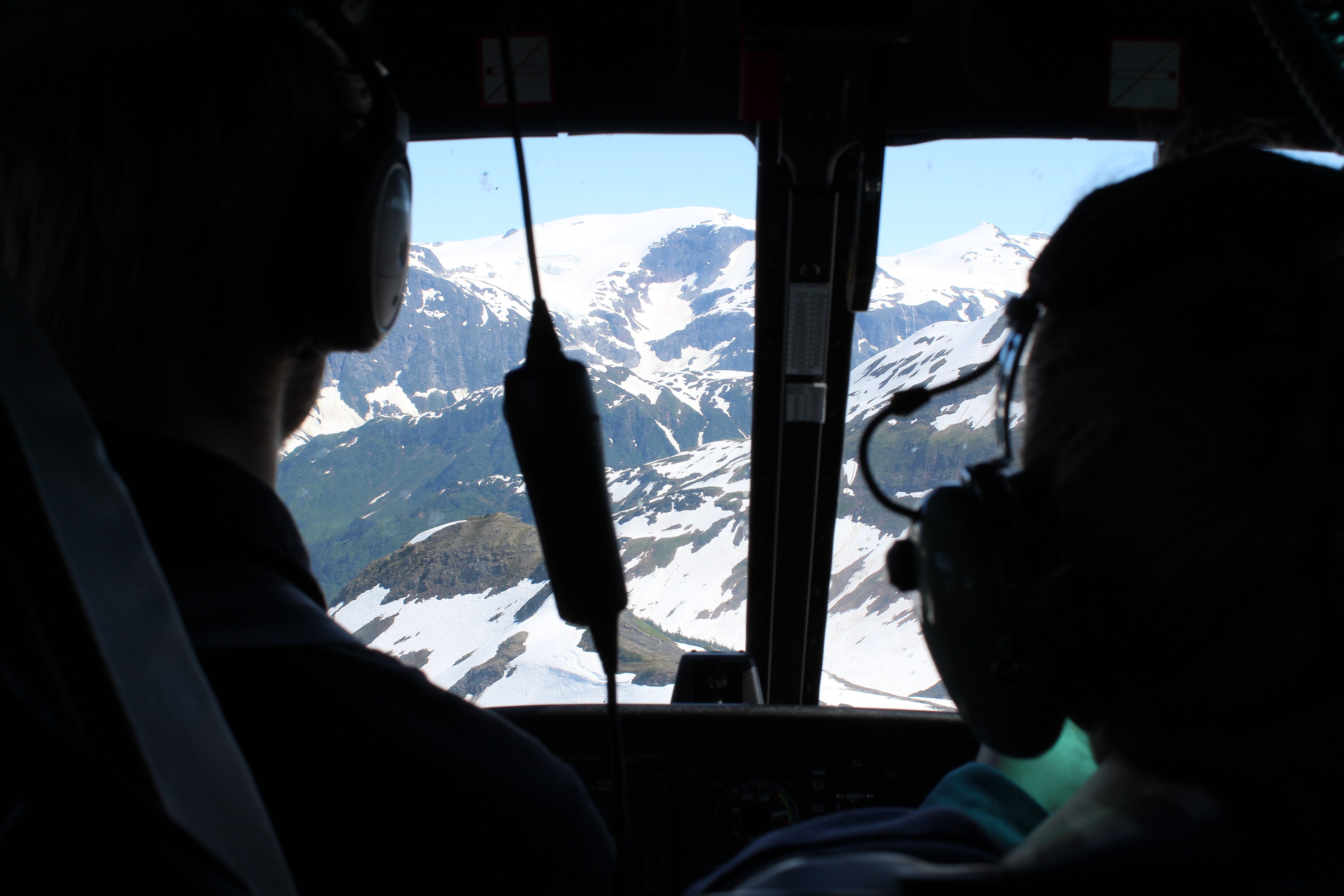 High above us, at the top of the mountain, thunder! A small avalanche came rushing down. We saw the evidence of danger and realized the risks of hiking mountains in the snow. The musher pointed out the pile of broken-rock looking snow at the base of a nearby mountain, telling us that this particular avalanche had occurred last week. Her buddy had been planning to scale the rocks of this one, but after the avalanche told us that he valued his life more than the view. When we saw two hikers at the summit of a high mountain from the helicopter on the way back, we knew the risks they’d taken to get to where they stood, and there were no success t-shirts proclaiming their accomplishment waiting for them up there.