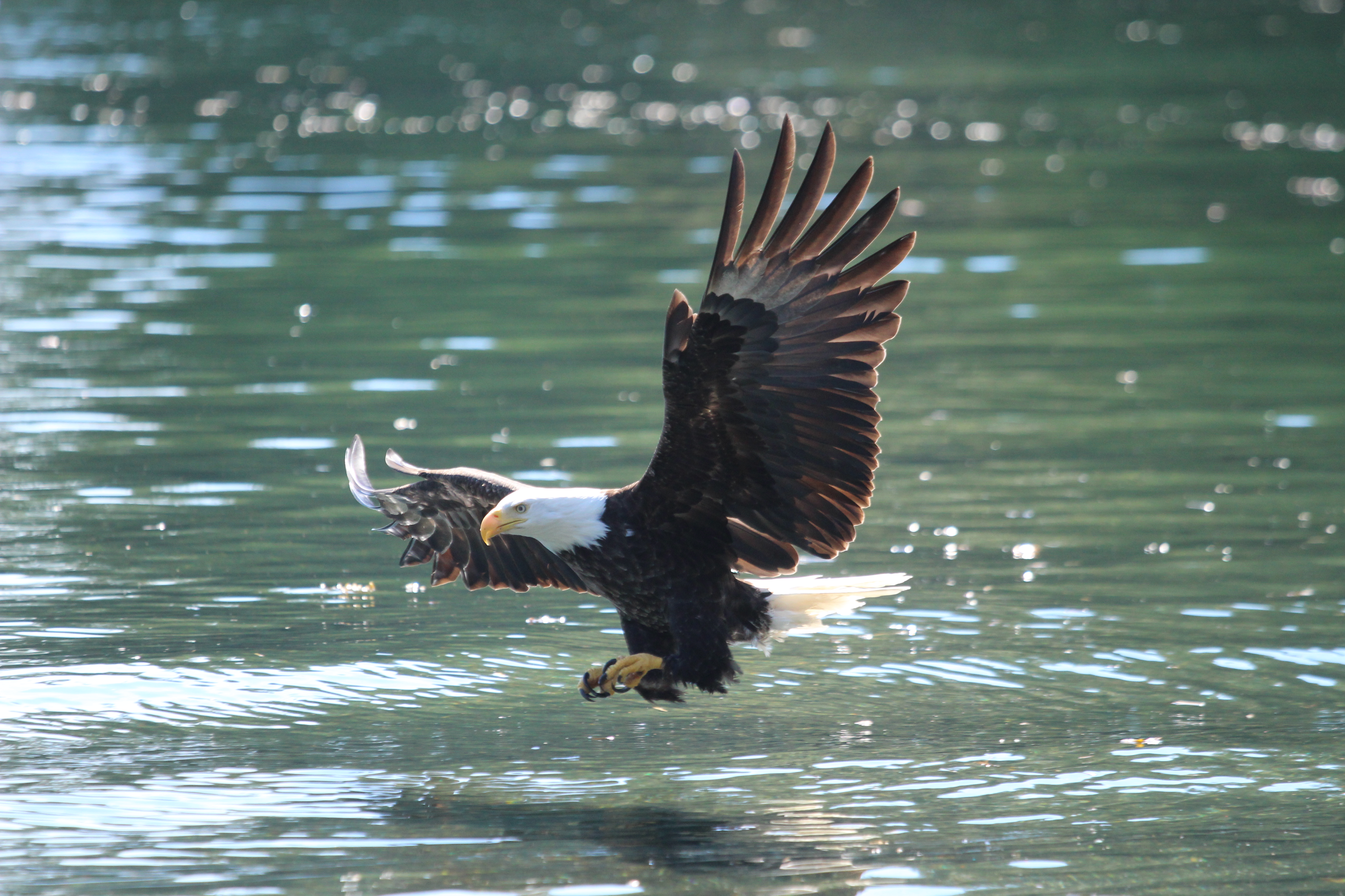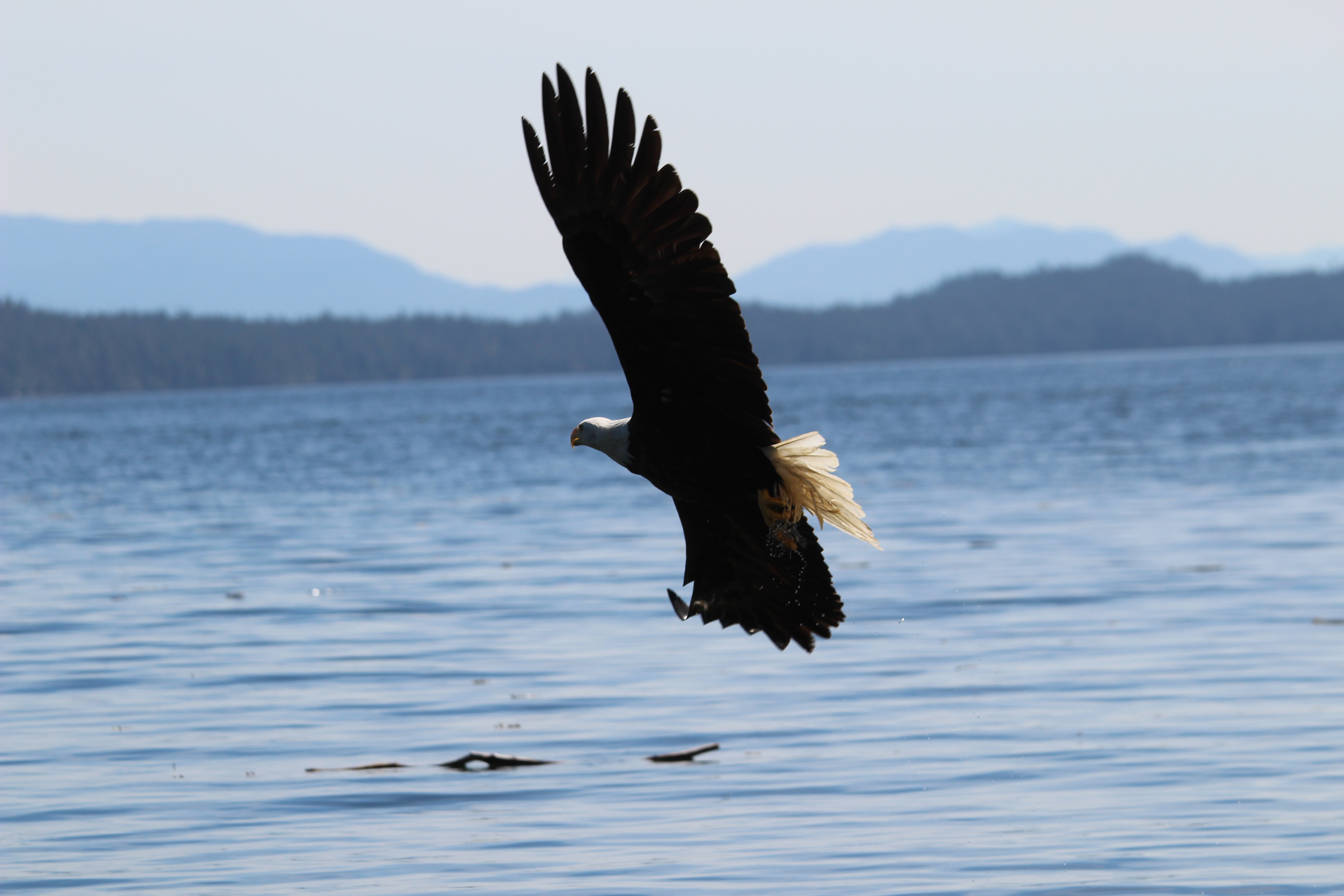 On our visit to Ketchikan, Alaska, we booked an excursion to ride in a Blackbird Hovercraft over to Black Sand Island, where eagles and pods of whales are known to frequent. While we didn’t see any whales on the tour, the eagles more than made up for the lack of whales as they dove for herring and put on a spectacular show for us!