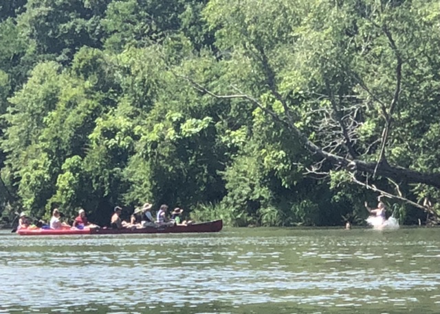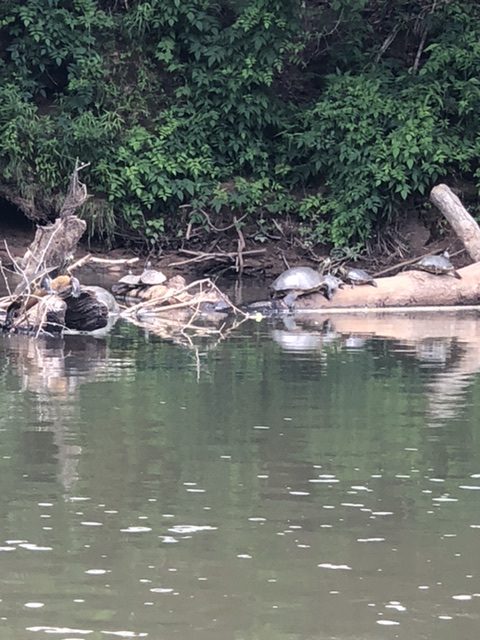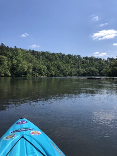 I had that flashback of childhood today as we kayaked the Flint River from Sprewell Bluff Park to Highway 18 in Upson County. The river was low, and the ride was rocky with only one high-anxiety experience when I ended up sideways on a rock with rushing currents and my boat took on water. Thank goodness my husband came to my aid or the Gypsy Soul would have been a goner for sure. But before the trouble happened, we noticed a group who had stopped to climb a tree hanging over the river and jump from a rope swing.