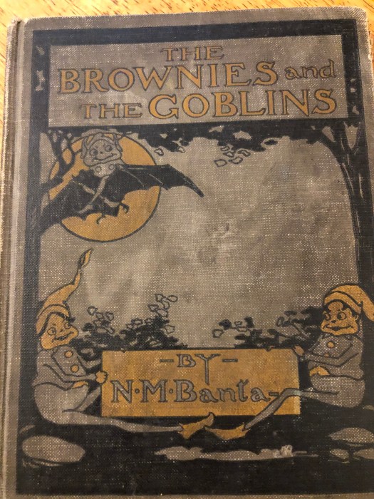 I did not know anything about Brownies and Goblins until I ”stumbled” into a 1915 grade school textbook entitled The Brownies and the Goblins by N.M. Bantlay. To add enhancement to my early education, I did a quick read-scan of the well-illustrated volume, beautifully crafted. I came to understand their profile.