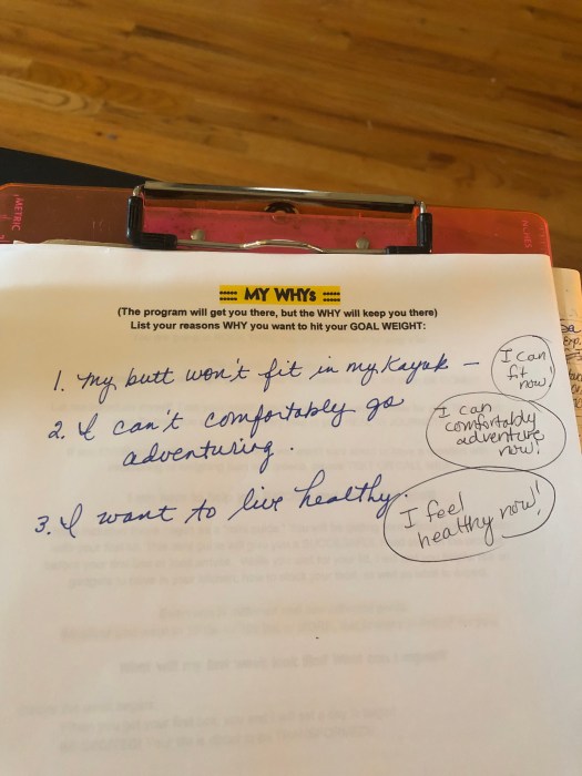 Five days shy of six months (from August 10, 2022 to February 5, 2023), I hit my weight loss goal. Optavia made weight loss convenient with my busy schedule and kept me satisfied so that I was never climbing the walls with hunger. Easiest weight loss plan I’ve ever done, hands down! I pulled out my starting paperwork and reflected – I needed to write down the new weight and measurements on the day of celebrating success. I’d used blue ink at the start, so I grabbed a black pen and began noting the new information next to the old.