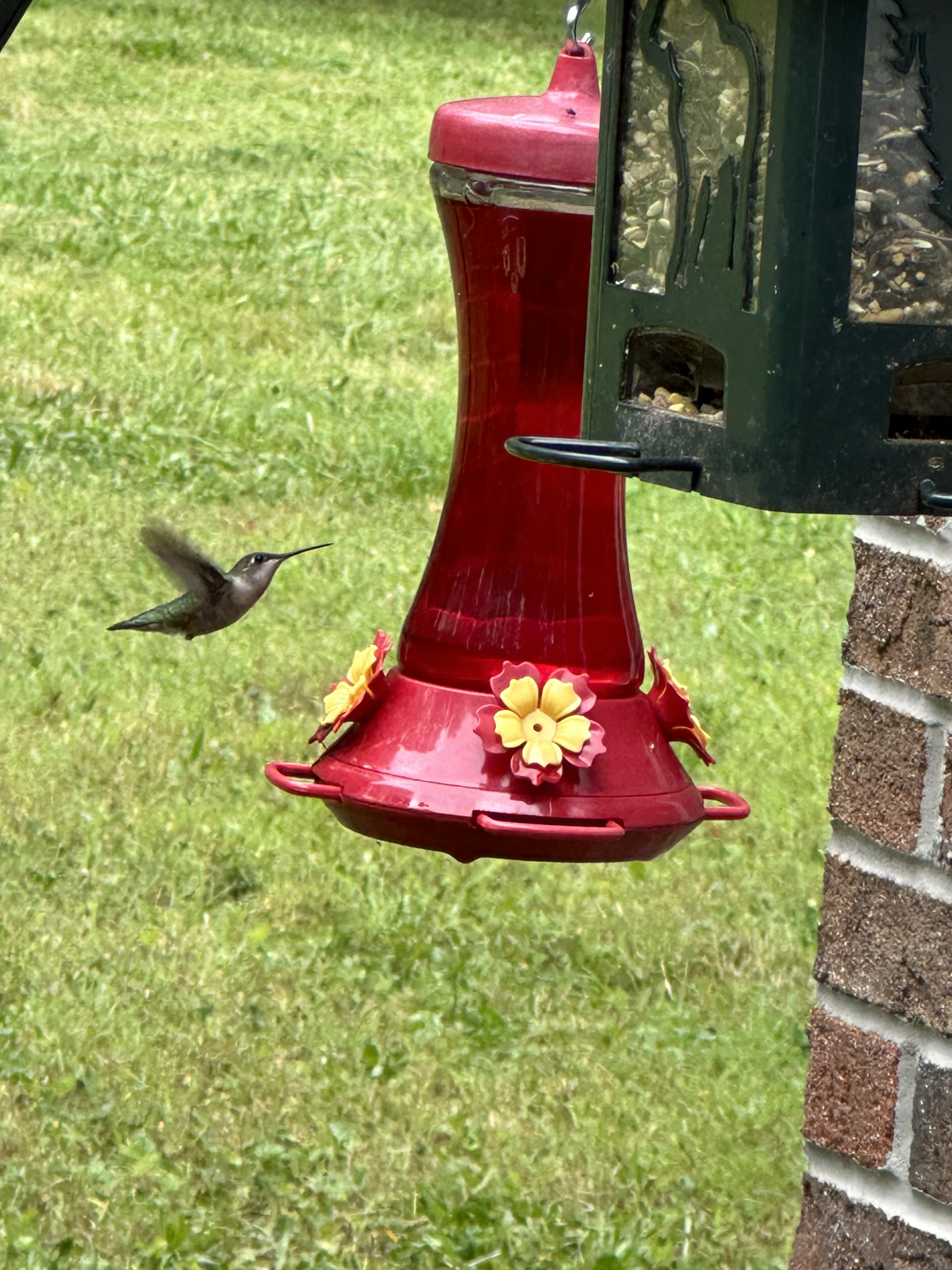 We grabbed a bag of birdseed and then I remembered my hummingbirds were out of nectar. We got a couple of containers of that, too. And replaced one of the feeders that has been broken since last summer. Oh, and suet cakes. I have ten suet feeders lined along the edge of the woods hanging on pine trees, and 8 of them need new cakes already this season, so I grabbed a box of those, too.