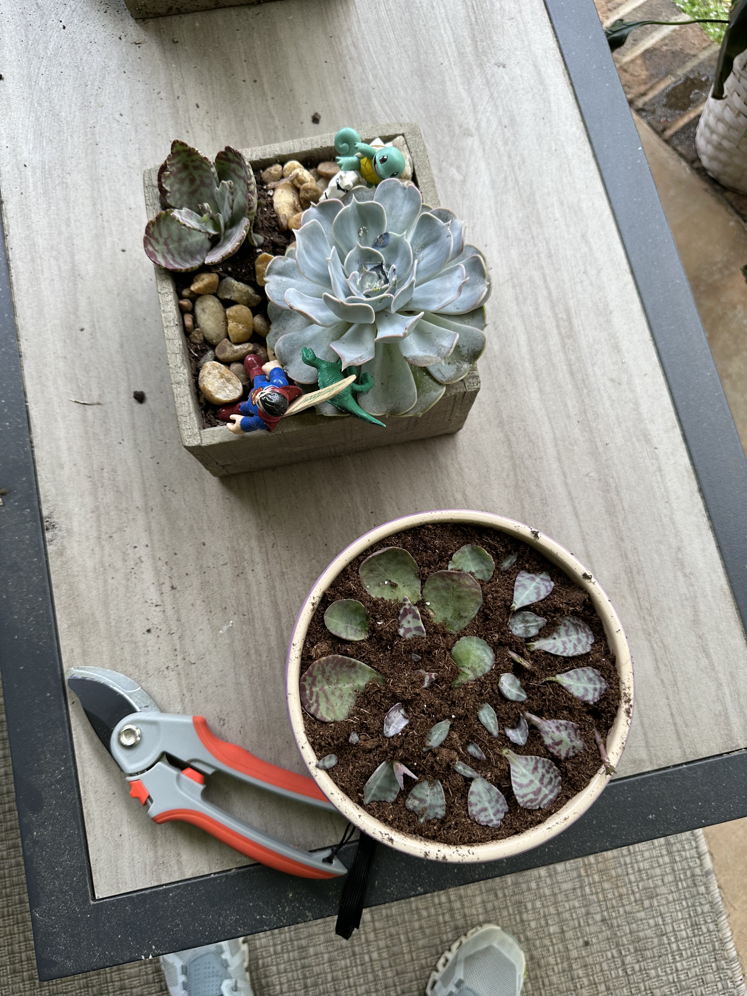 Then I remembered the succulents I’ve been needing to propagate, along with the hydrangea I was already planning to propagate. Plus the half-dead, half-alive gardenia bush and the jasmine plants in the front and back that seem to have been affected by the deep freeze back in December. More ceramic planters, and some rooting powder. Gotta have rooting powder. Plus Perlite, Peat Moss, and Potting Soil. The 3 Ps of Plant potting.