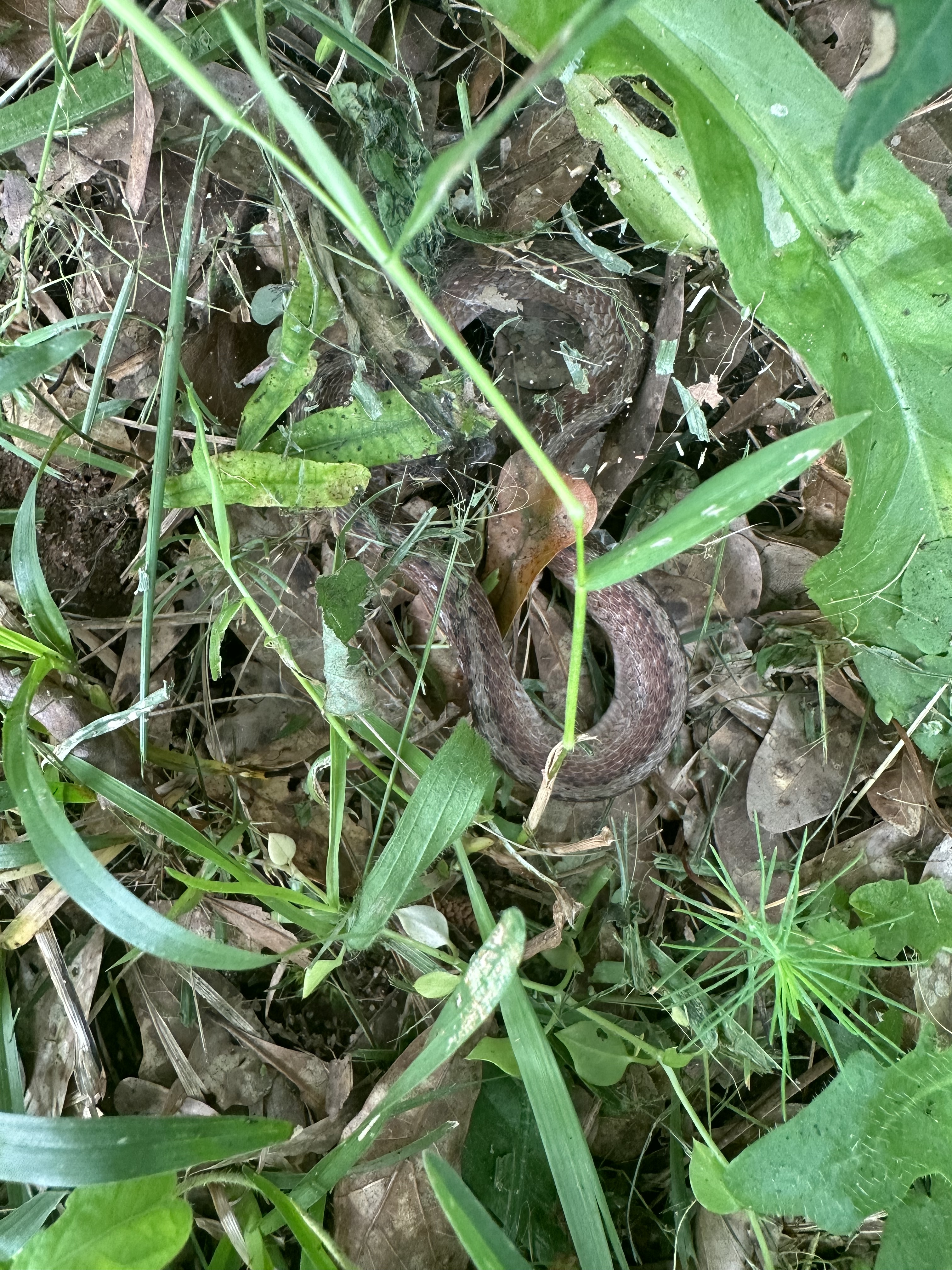 Briar called me to the bottom of a tree out front to identify a snake he’d found (yes, I’m the one who handles all the snakes here on the farm, while he handles the things with actual legs), and it was a sweet little Dekay’s Brown who was injured – probably from the mower. He won’t survive his injury, but as in the great ways of nature, he’ll slither off and become part of the dinner of the Great Horned Owls who live in these woods, or the Red Shouldered Hawk who was here just this week checking in on things, or some other predator who is hungry and on the hunt for its next meal. I hate it for the little guy, but anytime there is beautification of a yard, our animals also pay a high price at the register.