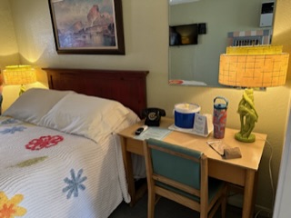 We walked around the side of the motel to the little courtyard where the colorful metal chairs awaited us and were joined by a couple from New York. He is a retired school superintendent, and she is a school guidance counselor one year away from retirement. We sat in the shade of the trees sharing all our favorite places we have traveled and our views of the world. We represented the gamut of the political spectrum, respected each other’s opinions, and enjoyed our time together so much ~ if there were more places just like this one, we might realize world peace. Or at least be more neighborly in a politically-charged world! This couple is selling everything they own in the coming year and will begin renting short-term units and traveling around the country to experience life in different places. What a dream! I’m excited for them!