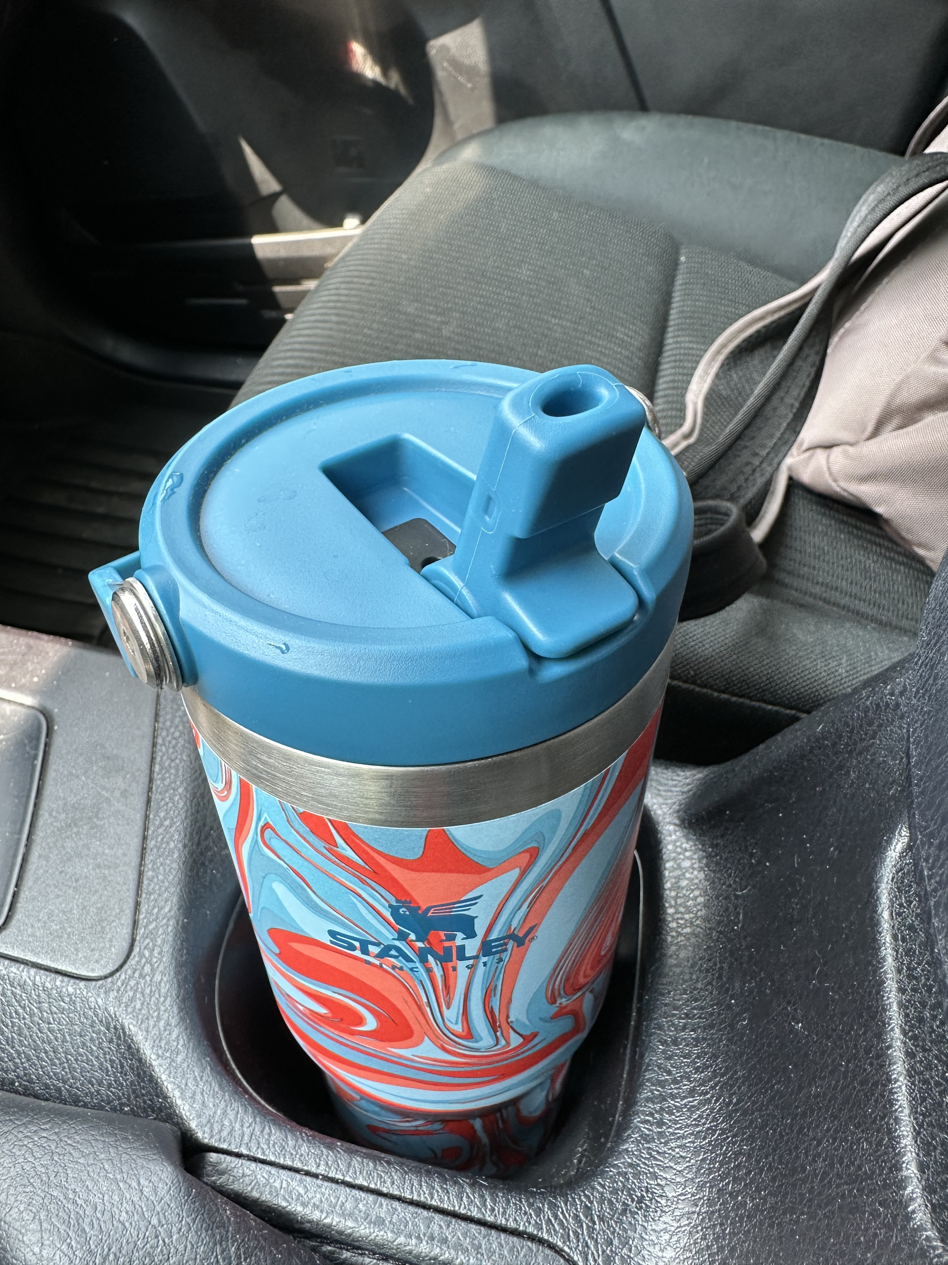 I removed the top, cleaned up the water, and tried again. It turns out that the lid does not screw on as easily as the Quencher series cups. When I took the time to be sure that it was fastened tightly and held it upside down again, it did not leak. So here are the pros and cons of the Stanley Ice Flow.