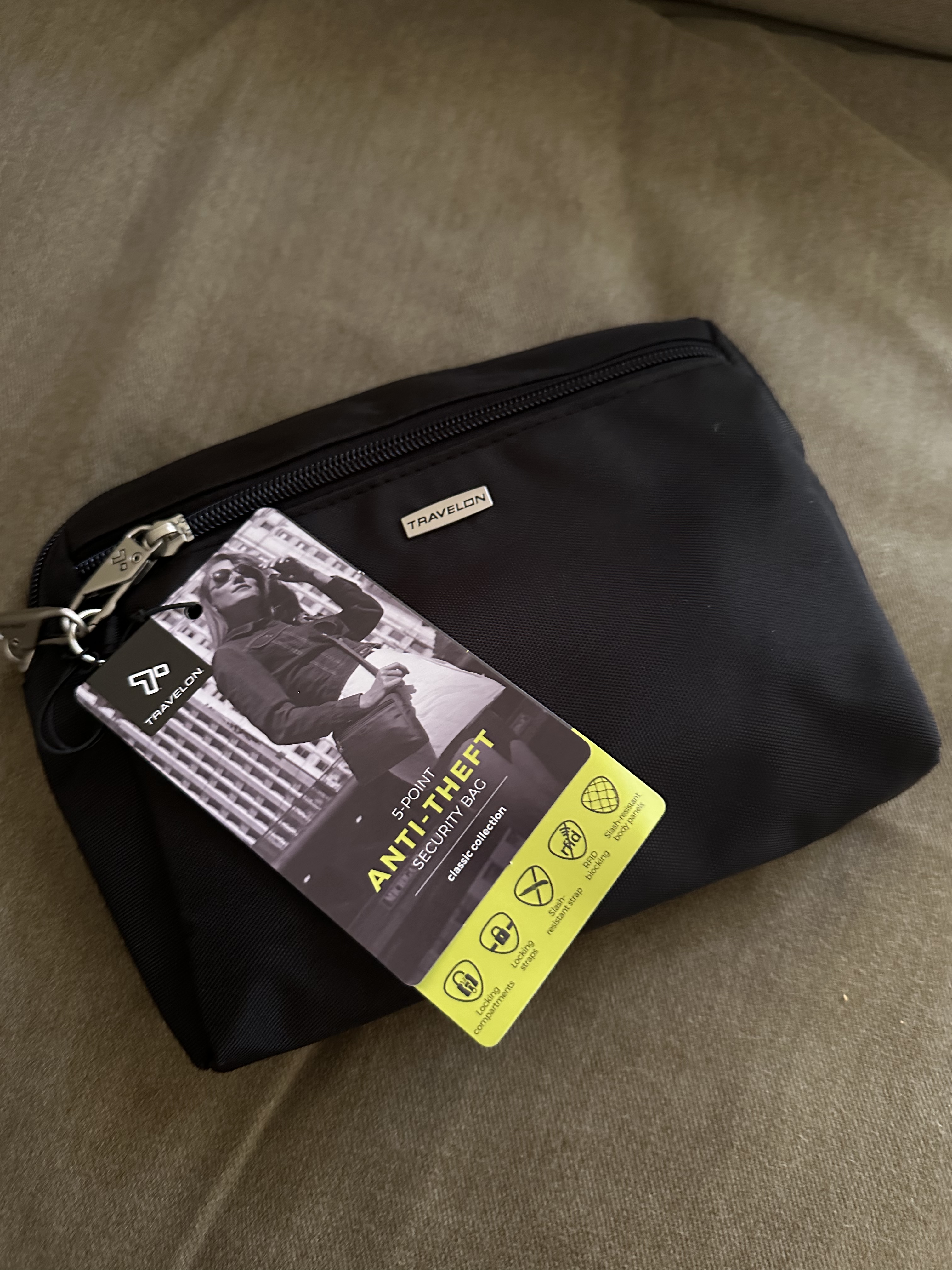 My personal bag is one that I carry only on the airplane to get the maximum ride for space; once I get where I’m going, I whip out my Travelon backpack with its locking features and use this for daily excursions. The clasps that fasten the bag shut mean I don’t have to worry as much about theft, and the RFID protection gives an added layer of peace of mind. For this trip, I’m also adding a crossbody bag from Travelon, recommended by my traveling friend Glenda from Idaho. I’ll put the crossbody in the backpack and the backpack in the personal bag so that I have a range of bag options for any outing.