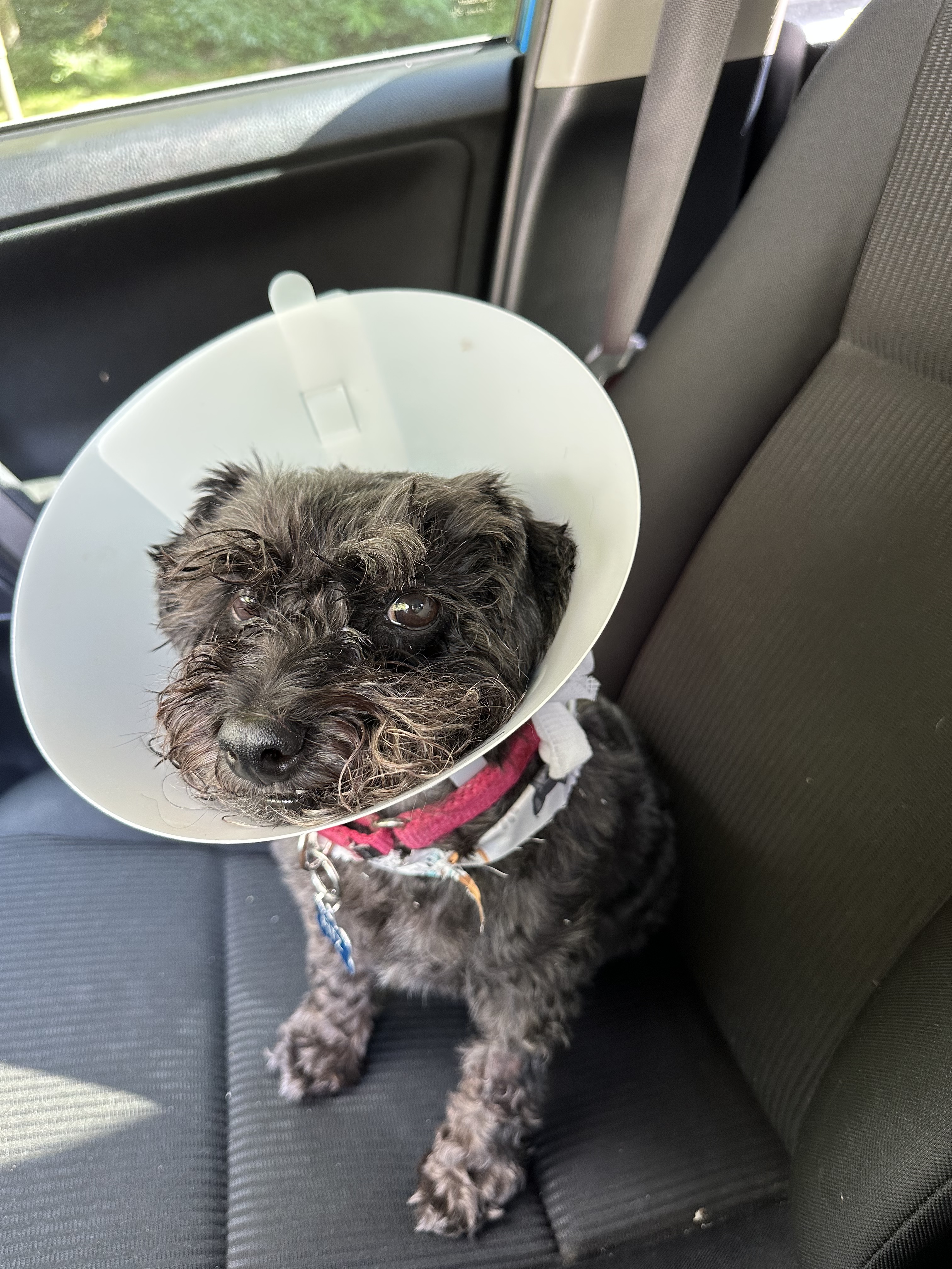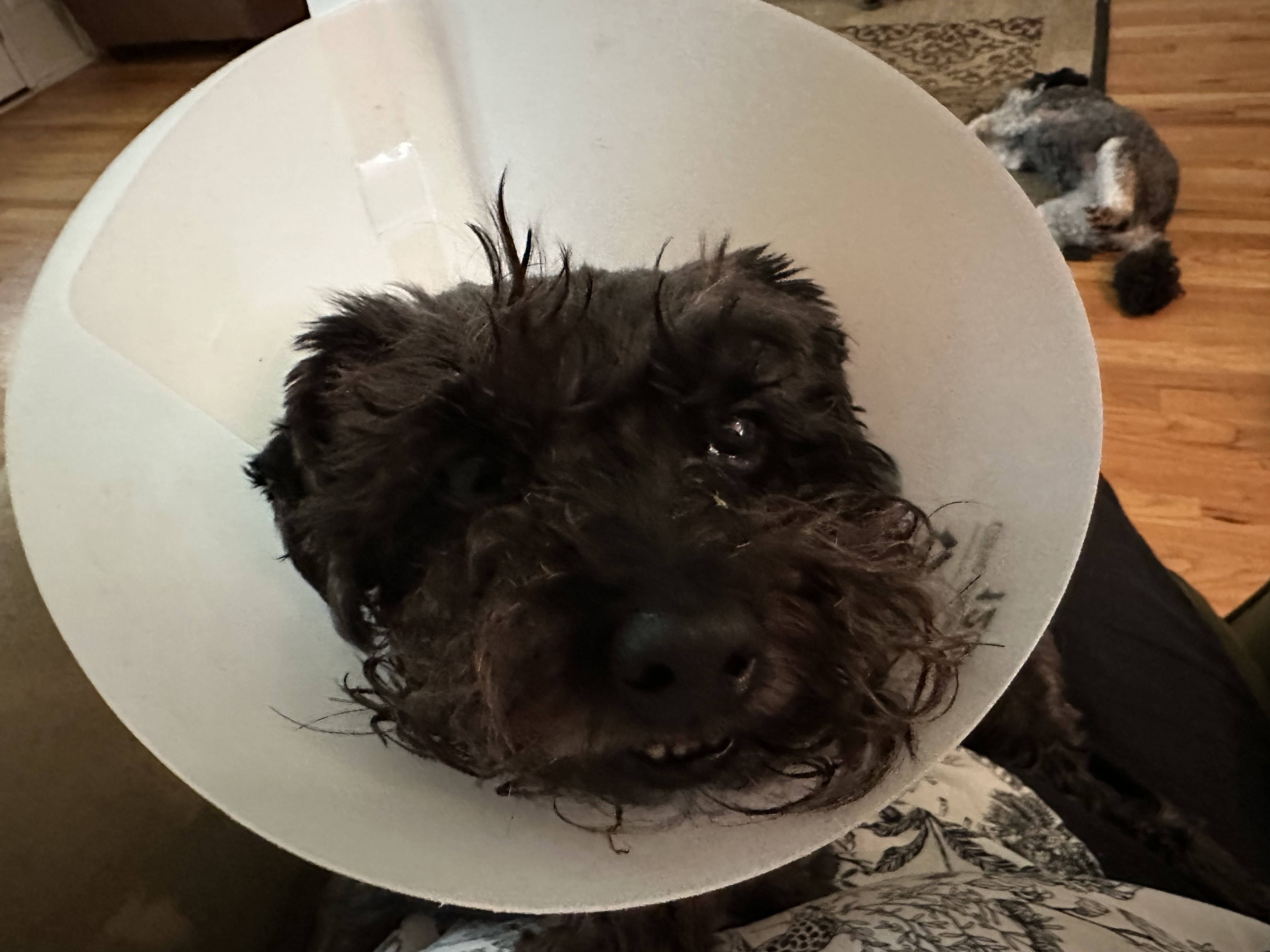 I might be on my way out of the doghouse. One of our Schnoodles, Fitz, had oral surgery yesterday, and he was having no part of that! He gave me the stink eye as I left him in the capable medical hands of those who could help surgically minimize the symptoms of his CUPS Disease. He’s been suffering from debilitating ulcers in his mouth for a year now, and removing the canines has been part of the plan.