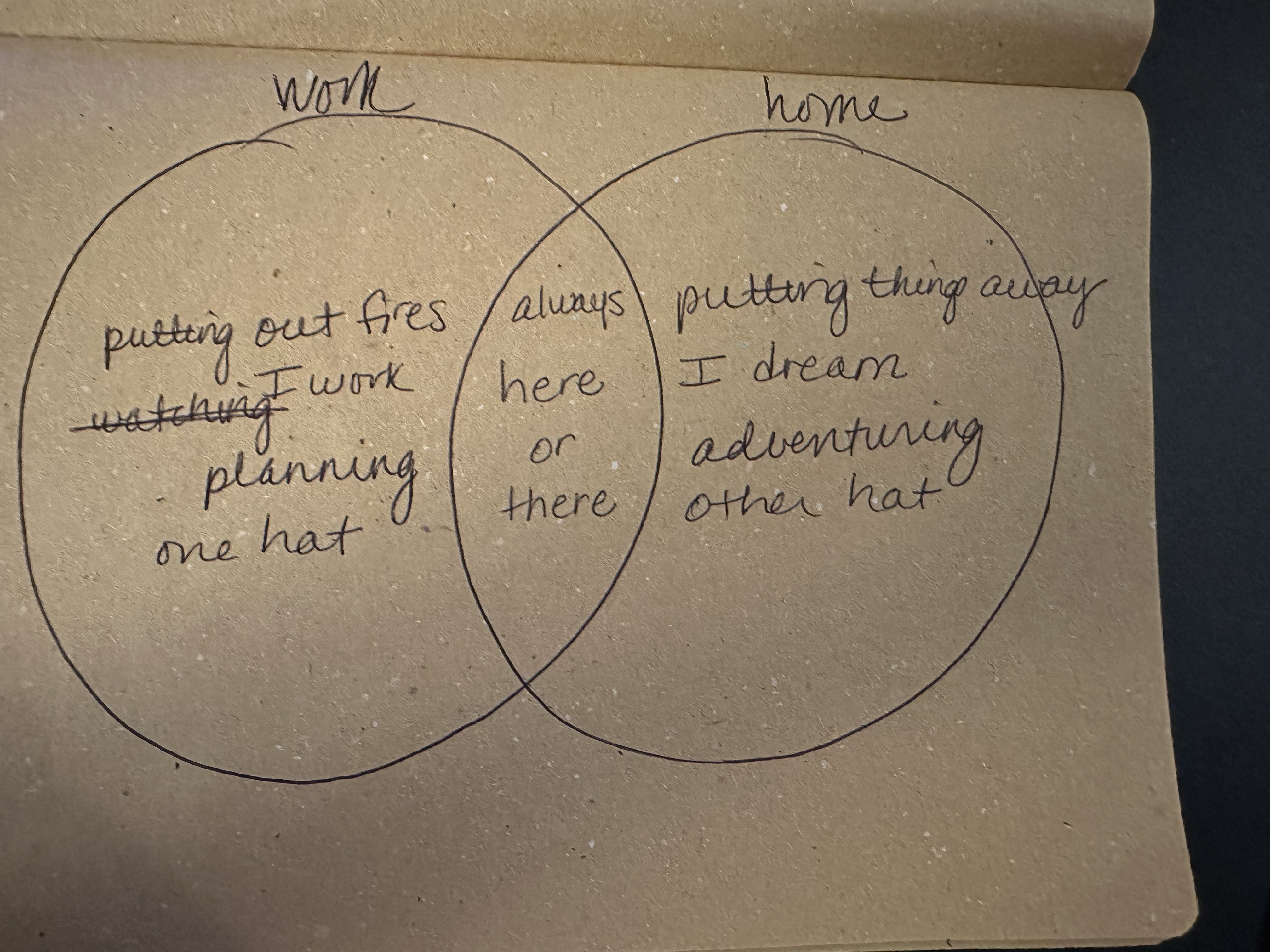 I put on my work hat and grab my keys, calendar, notebooks and computer.