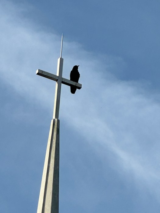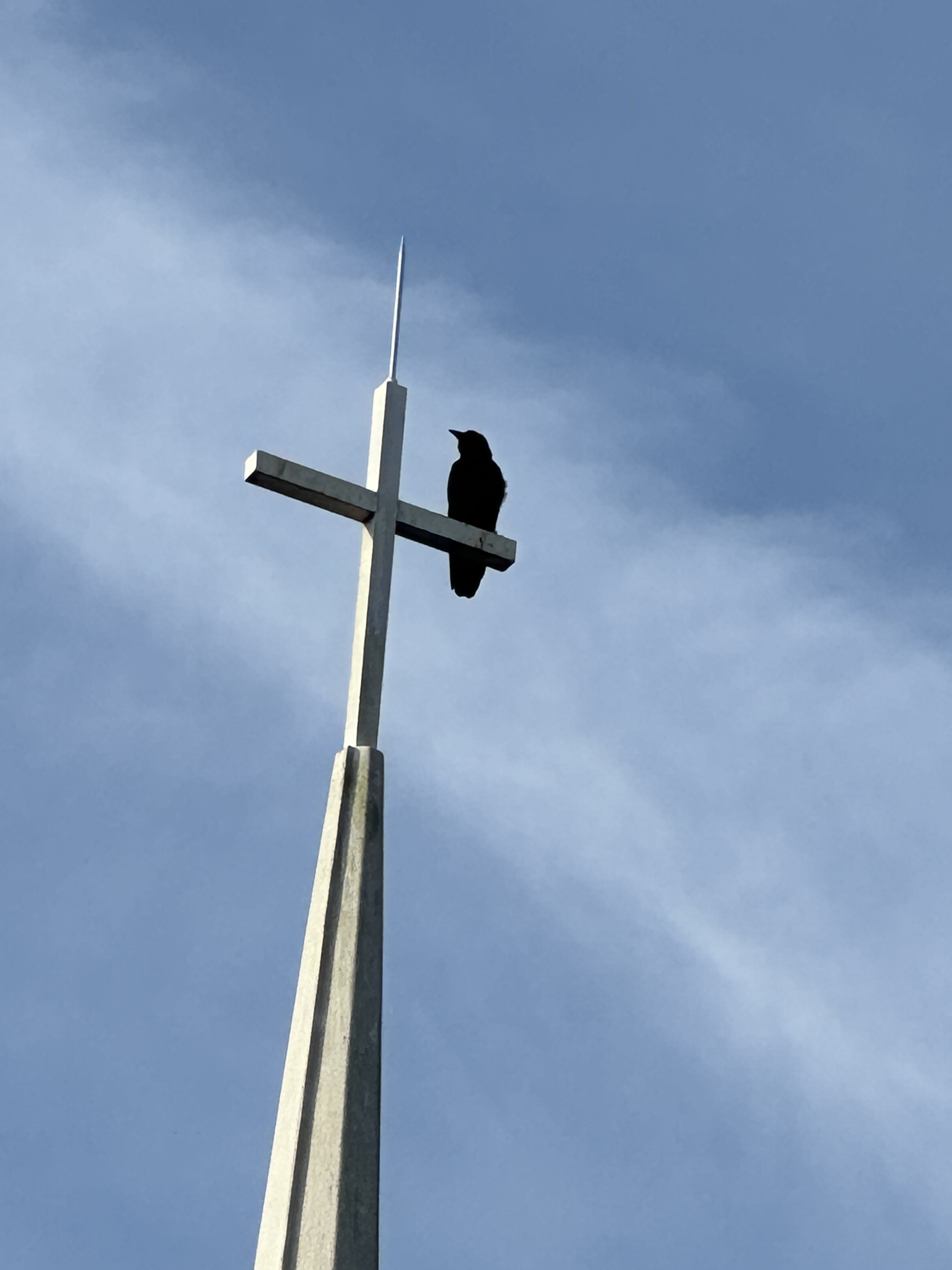 My friend Margaret Simon from Louisiana challenged her writing friends to write Zeno poems this week. It’s a 10-line poem with the following syllable count: 8,4,2,1,4,2,1,4,2,1 where the single-syllable lines rhyme. I’d held a family engagement session this week at a local church’s preschool center, and as I was leaving, I heard the unmistakable caw of a fish crow directly overhead. I snapped a photo, not realizing at the time that it would become my zine photo for a poem! Thanks to Margaret Simon for a fresh, new poetic form. I feel a lot of zenos coming on!