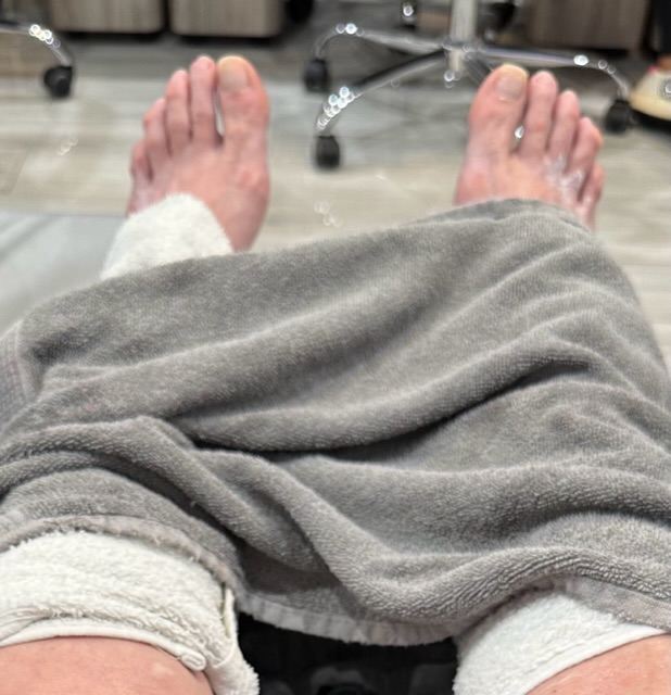 The leg masque time is soothing. My sister-in-law and I both picked the eucalyptus for its relaxation and amazing scent. They apply the masque and wrap your legs in steamed towels to help the moisturizers set in, and it’s a few fantastic minutes of heaven.