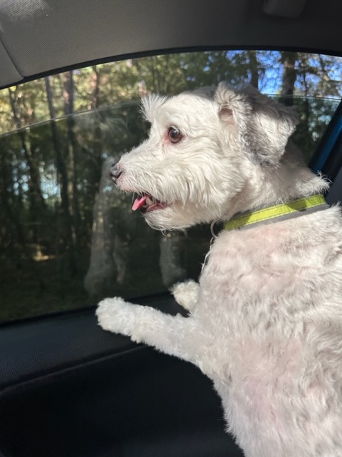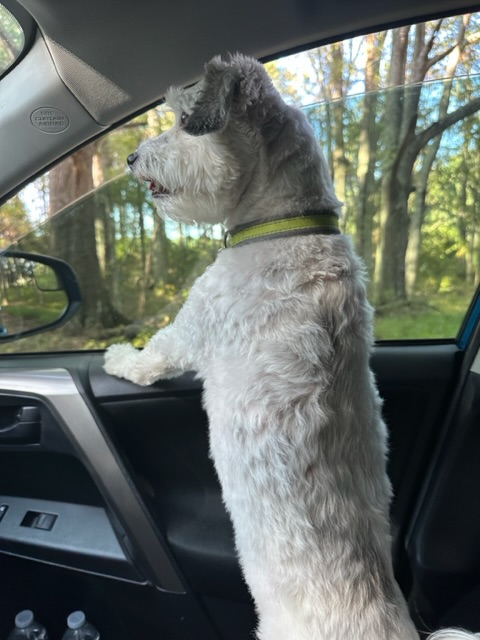 As we neared the Johnson Funny Farm, I cracked the window so Boo could do his favorite thing – – sniff all the smells of the fauna and flora of the realm that is now his permanent place in the world – not a place of abandonment, but a place of love and belonging. The place where he will live out his full life, grow old, and cross the Rainbow Bridge someday. Just not today, thankfully.
