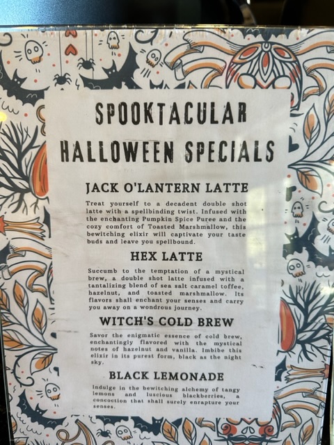 I had a meeting in our local coffee shop yesterday and treated myself to a Hex Latte while projecting next year’s budget and goals with a community partner. From inside, the vintage paned windows make the outside world look a little bit like a dripping realistic painting – the kind of windows that have candles and snowdrifts in the winter and don’t have 20/20 sharp focus. It’s like I’m in a world of my own in there.