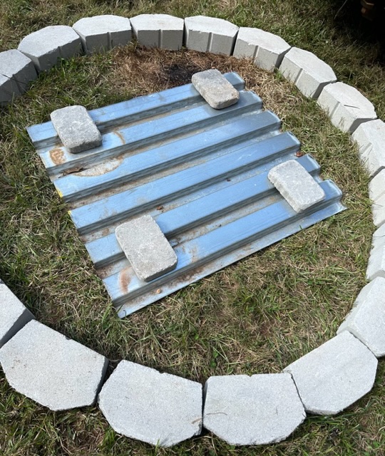 I gave the top cover of the metal pit a quick coating of Rustoleum, and about two hours later, our fire pit had a nice new base – and a top that looks brand new!
