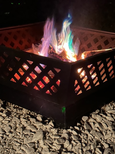 We threw in color flame to have a colorful fire that lasted about 30 minutes – blues and purples and greens!