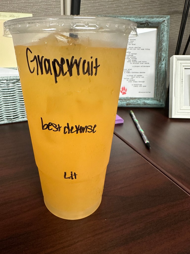 Posted on September 14, 2024September 13, 2024 by kimhaynesjohnsonGrapefruit Tea Habit Daily tea habit a surge of grapefruit caffeine is my best defense Share this: Click to share on X (Opens in new window) X Click to share on Facebook (Opens in new window) Facebook Like Loading...