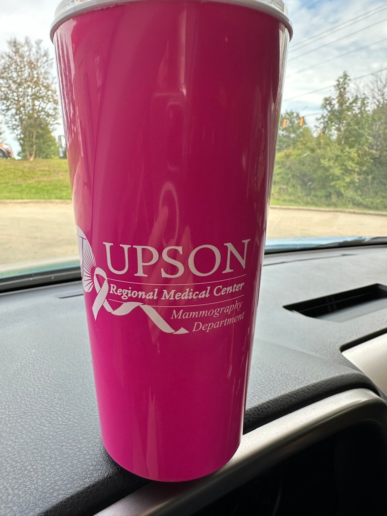 When I finished my annual screening with close to 30 pounds of pressure on each side top to bottom and sideways (according to the digital readout), I had the strangest urge to go celebrate with a pancake breakfast. Instead, I thought about my recent bloodwork and the results that my sugar should be considered before making any spontaneous breakfast moves. Once I’d removed the gown and gotten my girls repositioned and safely strapped back into their carseats under my shirt for their travels through the day, the mammographer thanked me for coming, giving me a pink cup to help me carry the message.