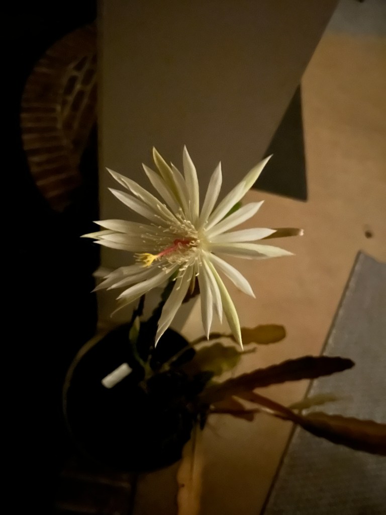 Posted on October 1, 2024October 1, 2024Night Blooming Cereus I watched it happen: this night-blooming cereus popped open and bloomed!