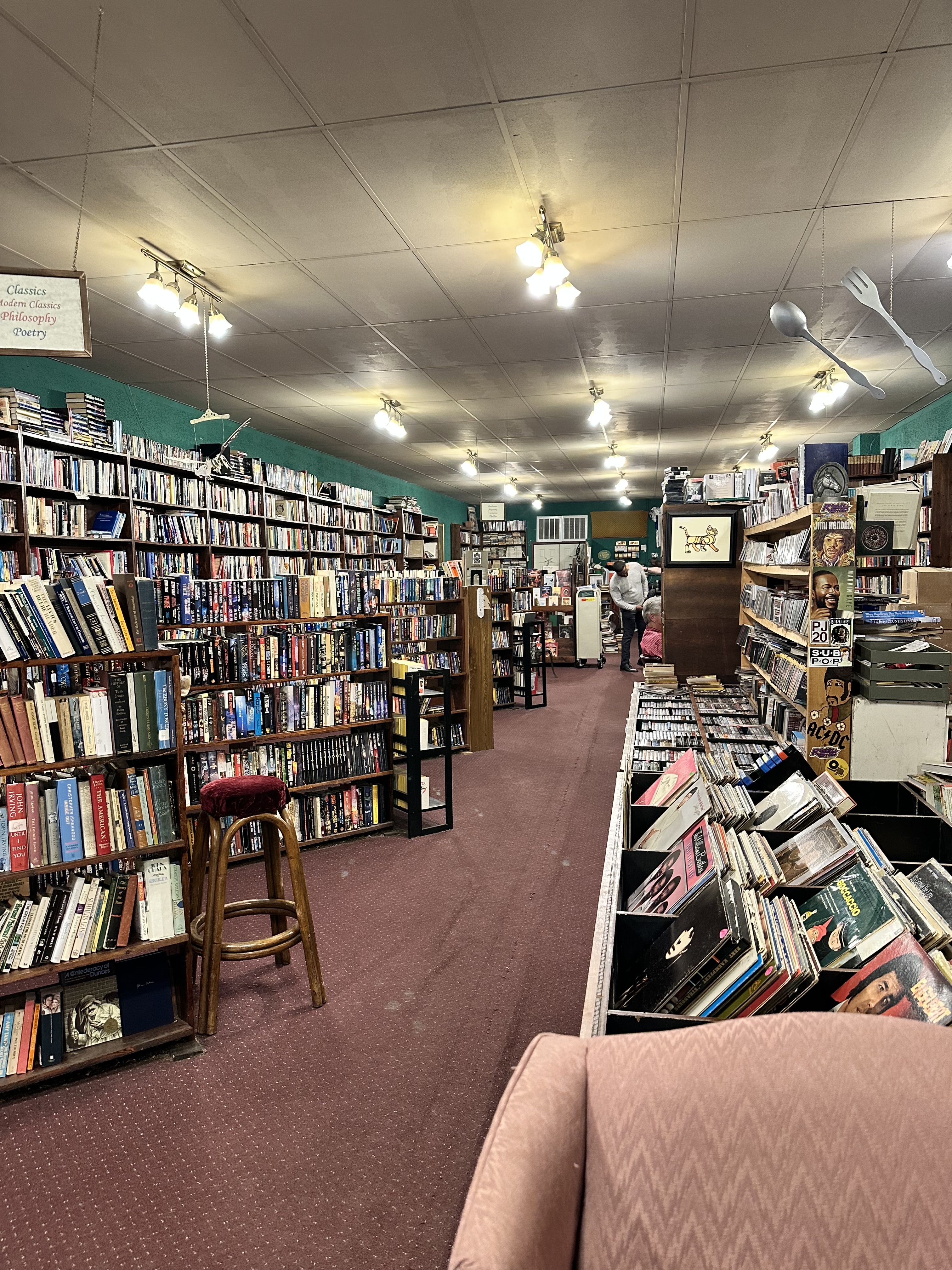 I have never met a bookseller I didn’t like, but I genuinely took interest in Tommy. He talked with us and told us about the town, even pausing to explain how before Covid, men would gather outside and talk (the Penny Loafers). I could tell that this man was happy and unhurried, peaceful and well-read. I asked him the title of the last great book he’d read. He ambled over to the display, kind of scratching his chin, and recommended Big Fish as the one he recommends to everyone. He explained that while he isn’t big on magical realism, he thinks this book is the best in its genre. Of course, when Tommy from JudyBugs or Tony from the Verbivore recommends a book, I’m buying it as I envision him drinking port with Theo from that bottle that told the story of a life.