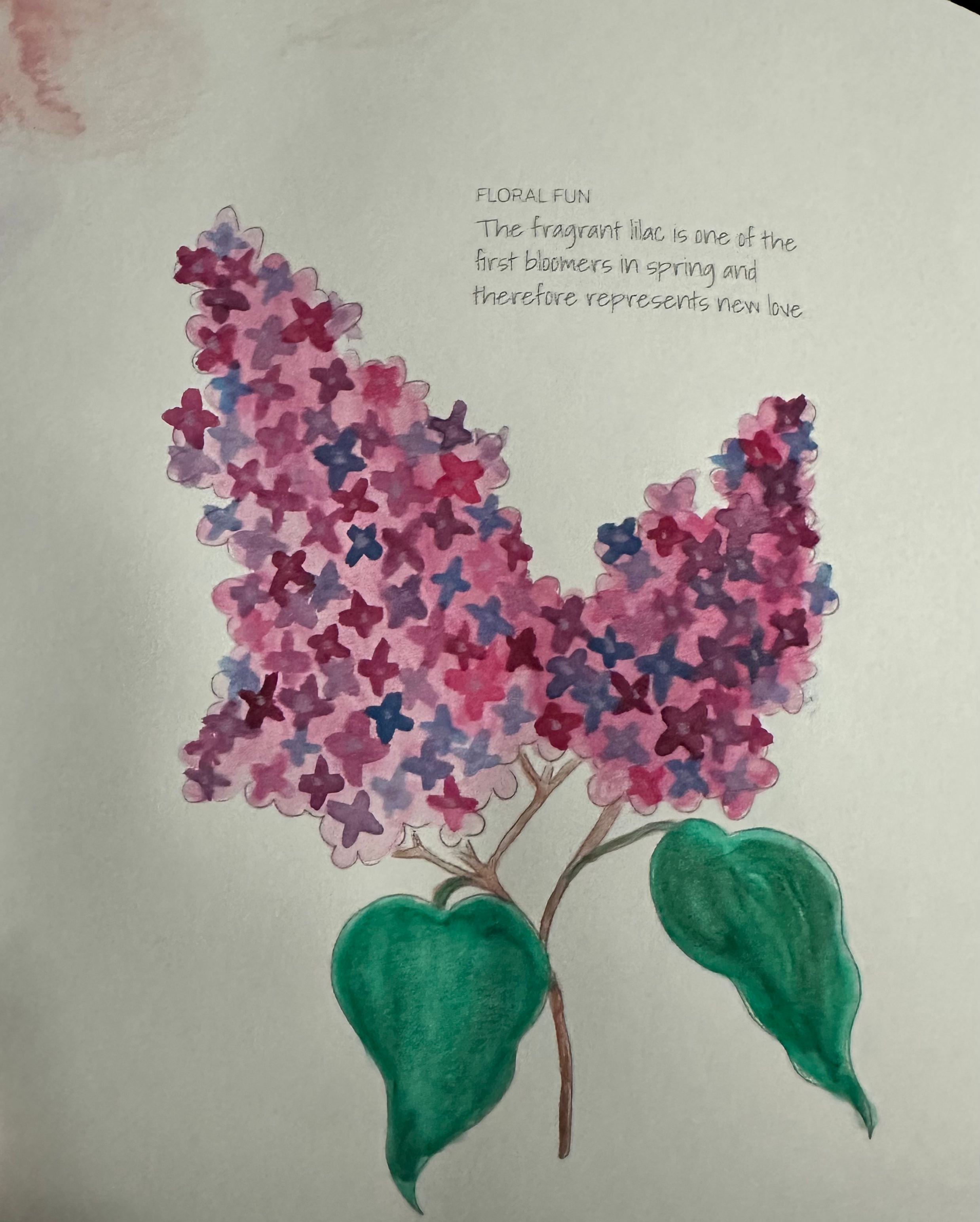 I chose a lilac for an alliterative haiku, inspired by this image below. A novice attempt at the painting, but a start nevertheless.