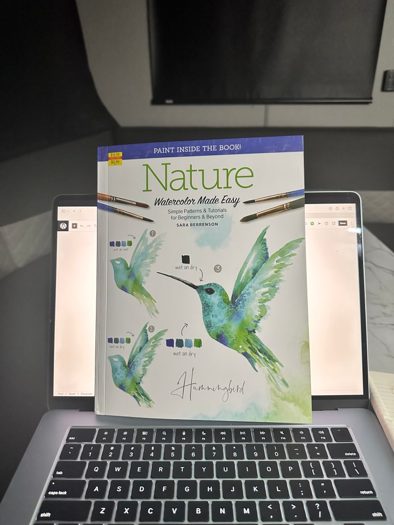 Luke inspires us to write poems that have alliterative beginning and ending lines and that are inspired by a photo on our camera roll or any other image. You can read his full prompt here. Lately I’ve been dabbling in the fun and challenge of watercolor painting after seeing so many friends’ lovely paintings last month as part of the Slice of Life Challenge. A couple of them were using Emily Lex guides to take them step by step through the process, and it prompted me to pick up a set of watercolors and see what the paint brought out. I started with an inexpensive Hobby Lobby version similar to the Lex guides – this one with a nature and floral theme.