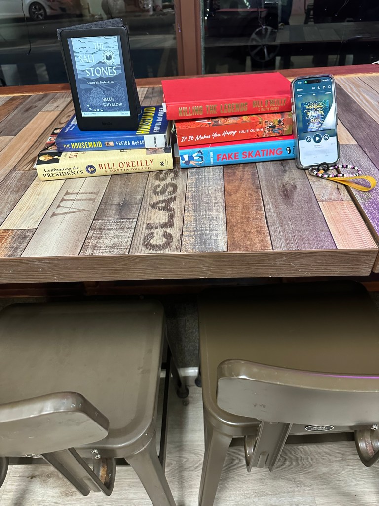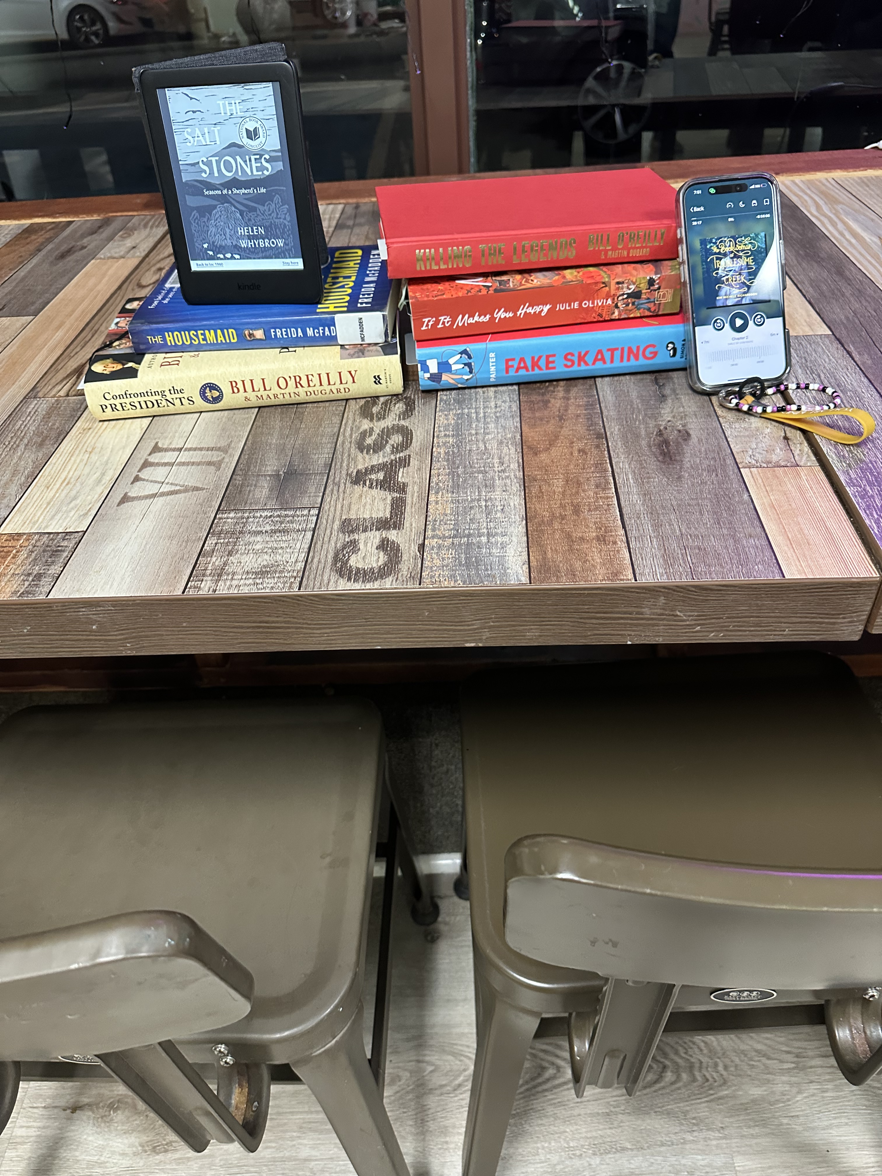I’ll go first. Right now, I’m reading Not Quite Dead Yet by Holly Jackson, which will be the January 2026 pick for our Kindred Spirits book club. It has me on the edge of my seat at every new twist and turn. I especially like that the setting is taking me back to our trip to Woodstock, Vermont in November of 2024, where we had one of the best breakfasts I’ve ever had in my life, complete with Vermont maple syrup that was made from the trees on the property where we were staying. A friend and member of the Kindred Spirits book club recommended Woodstock as a stop on our trip after NCTE last year, and we used her exact trip itinerary from a trip she’d taken with her daughter in planning our own. While my husband and I were in Woodstock, we took some time to go exploring a few back roads while we were there, and I have some of the setting assigned to places we saw, such as the famous bridge. It’s hard to imagine that a crime like the one in this book could happen there, but where there are humans, there will be crime. This book inspired me to wrap up in a blanket I bought from the Vermont Flannel Company while I was there and to pull up the photos from that amazing trip and add them to the new digital photo frame my daughter sent us for Christmas. Oh, to go back there!