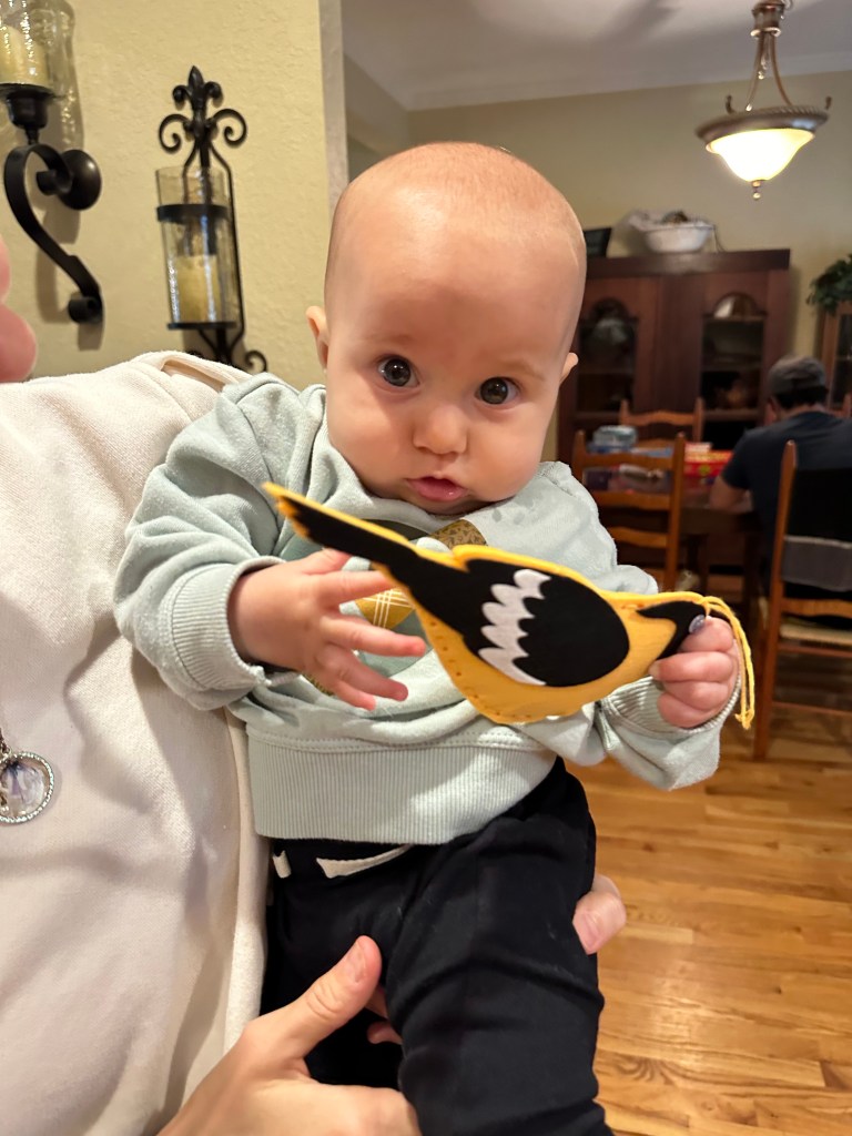 Since I haven’t physically seen him since Christmas and know my own battles with quick weight change, I asked about the size. I decided on the medium, but wanted him to know to be on the lookout for the gifts since sometimes with prankster kids (who learned it from him), a box might disappear off the front porch before anyone knew it was ever there. I put him on alert: