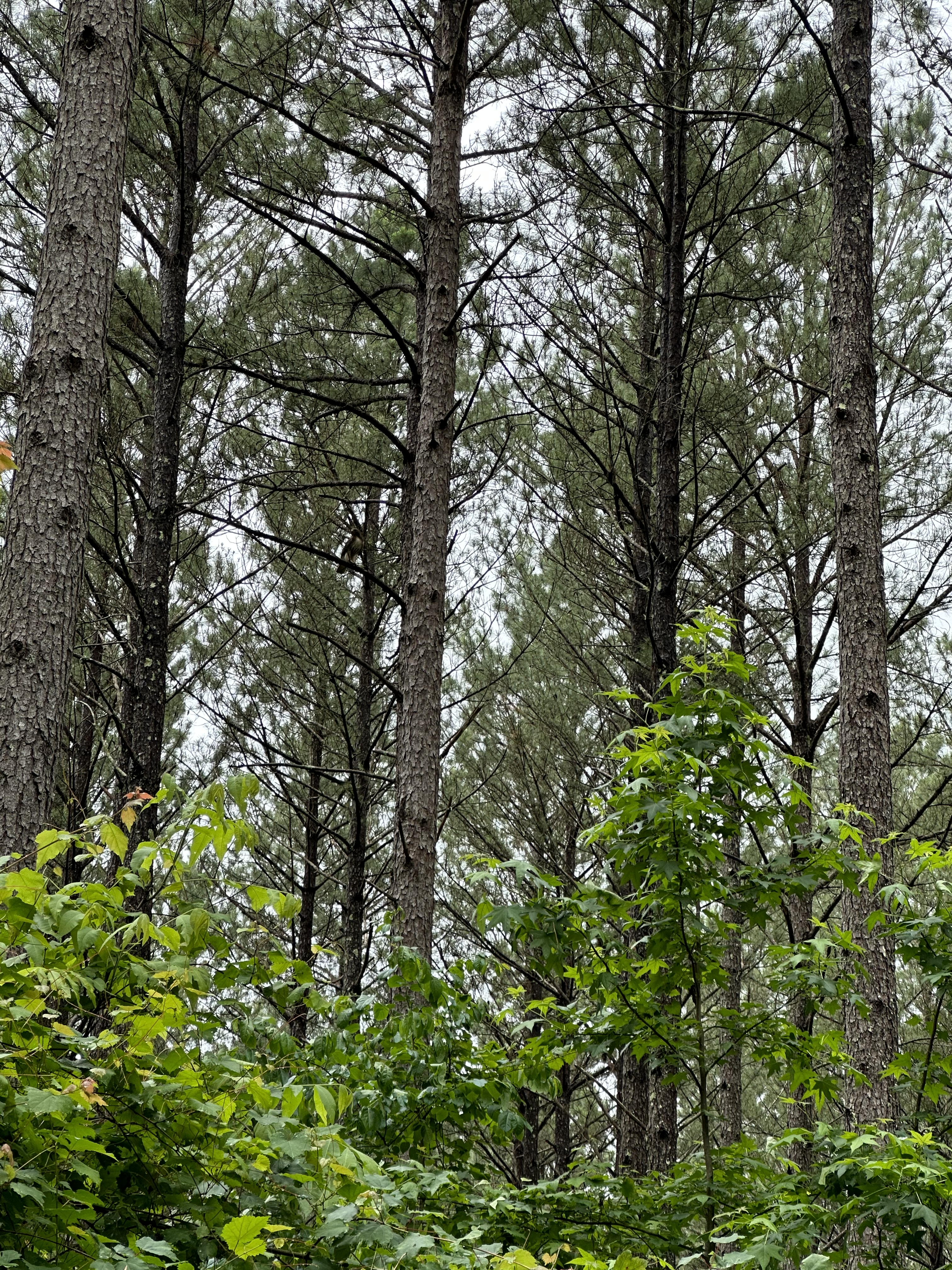 I’m not sure how I would feel about moving to a place where I didn’t get the occasional opportunity to see my husband, tractor running, standing off to the side in his wide-brimmed hat and t-shirt, with his jeans unzipped, peeing on a tree as he has done all his life here, as all little boys in the country grow up doing, never outgrow, and find that even into their later years there is no sheer pleasure like drawing a urine face on Loblolly Pine tree bark. Country boys pee like our ancestors did, au naturel and wholly Biblical, before all of this indoor plumbing.
