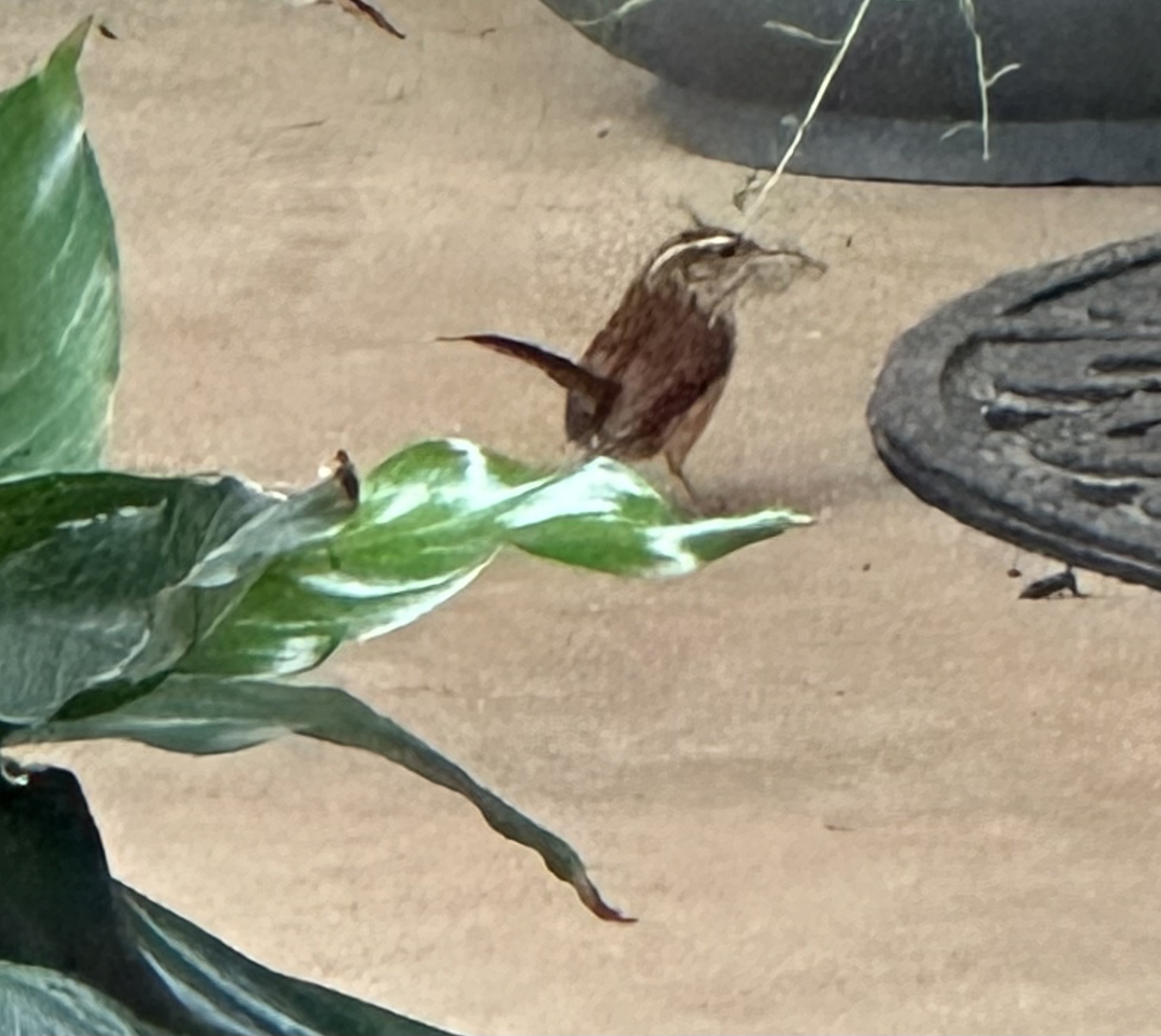 Take this morning, for example. I’m generally the first one up, and so I take the boys out around 5:00. They usually go right off the edge of the walkway and do their morning business, and it takes less than two minutes………until Boo decides to go over by the gardenia bush and gets wrapped around the birdbath and pulls it over, completely full, right at my feet. I was grateful it was not the block of ice it was two weeks ago.