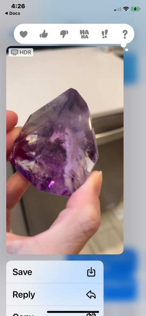 We were texting about her knowledge of crystals as I was suffering from a tension headache that has been debilitating since February 1, and I was willing to try anything – anything – to get my normal head back.