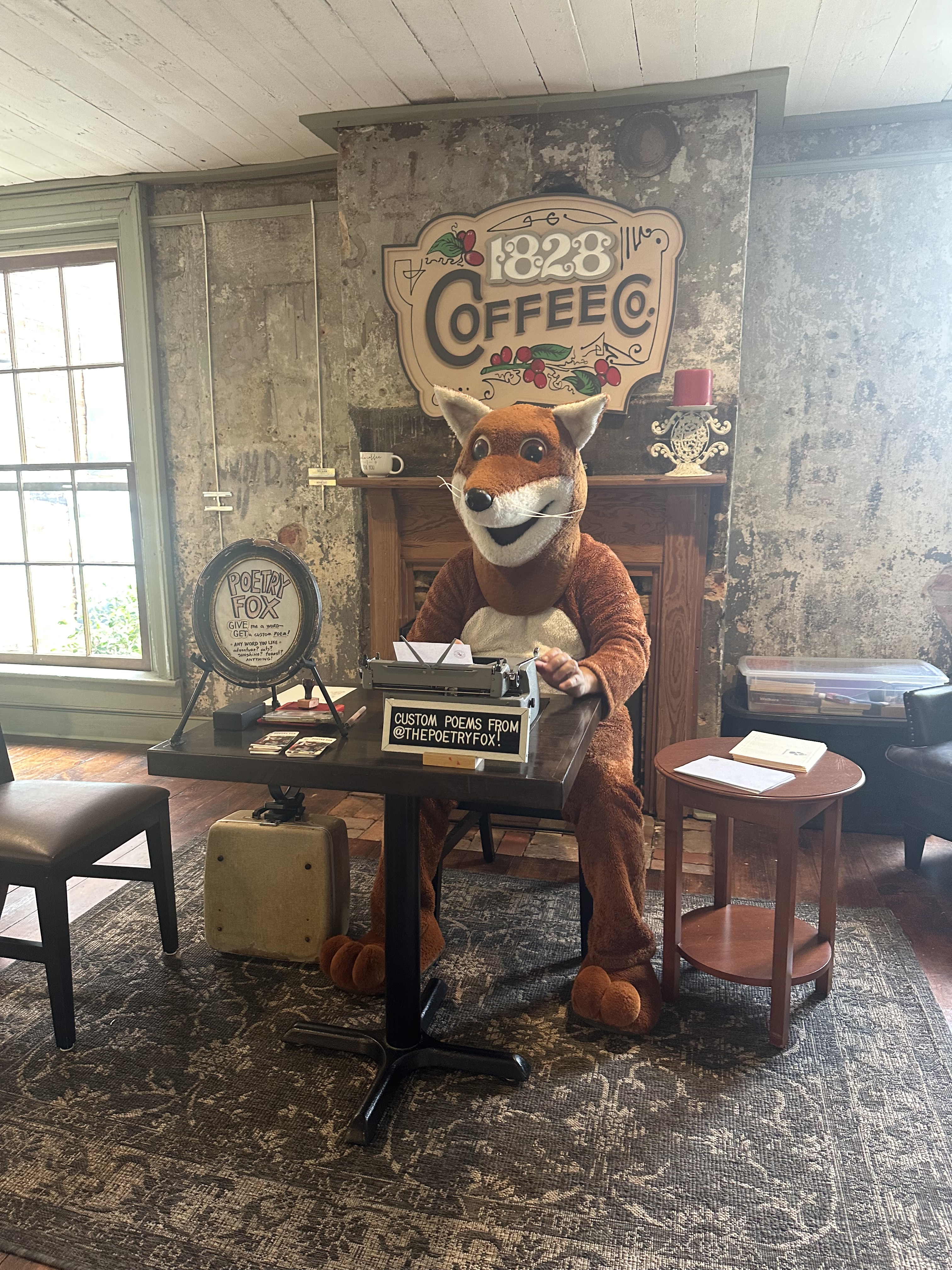 The Poetry Fox in 1828 Coffee Company in Zebulon, Georgia