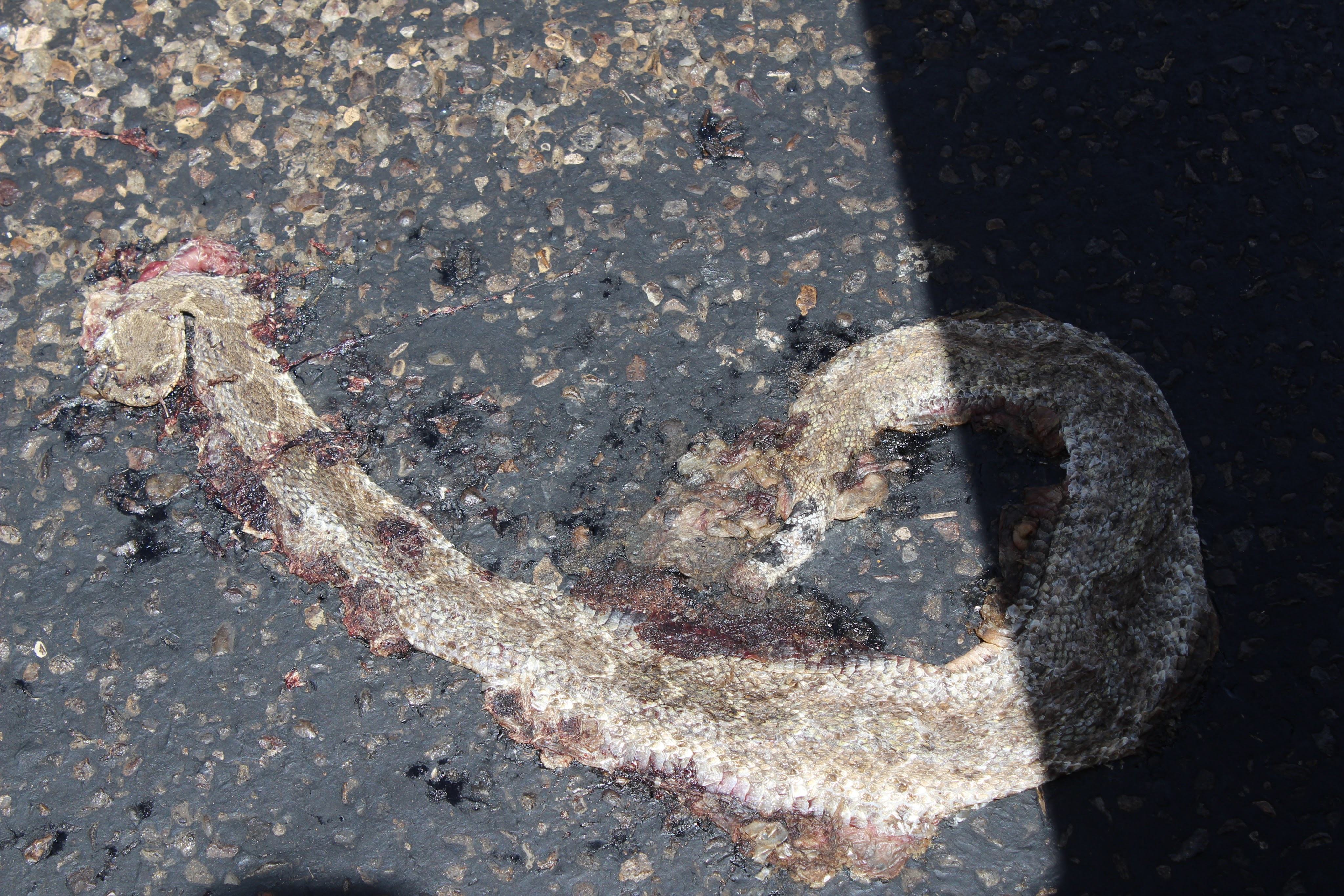 I was conducting a bird observation in eBird when I saw this species I’d never seen in real time. I snapped a few photos to add to eBird’s media documentation and we carried on with our drive, but my heart stayed right there under the picnic table with that roadrunner – – until we saw the remains of a Mohave Rattlesnake in the road. My husband spotted it, and sure enough, it had the black and white tail bands, the greenish hue, and the eye stripe and body patterning that I could still make out to get a positive ID on the snake. I’ll leave its photo at the very end so that if you are squeamish of dead snakes, you’ll have had a heads-up.
