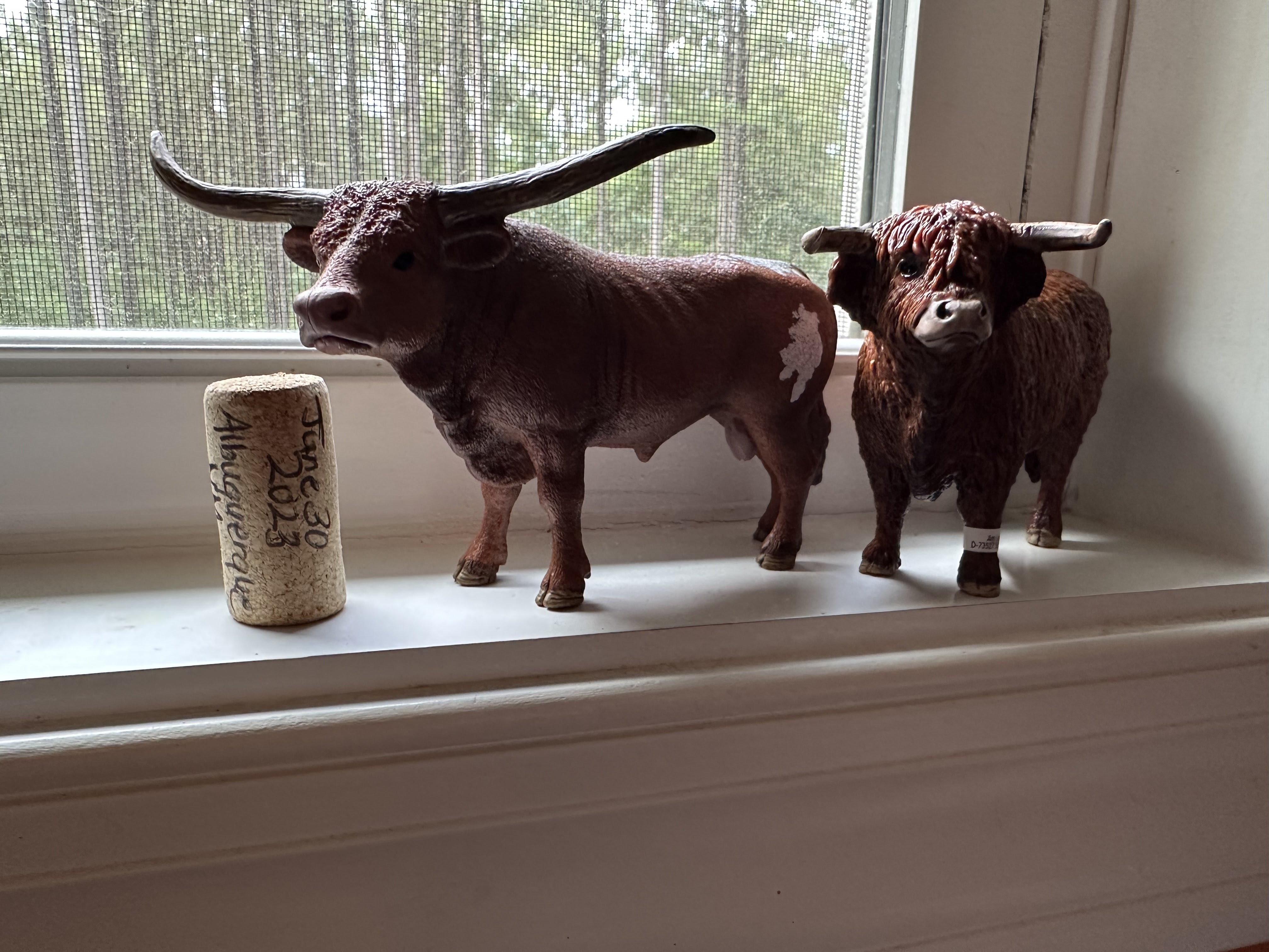 My new bulls, and a wine cork noted with the date, people, and place of savoring.