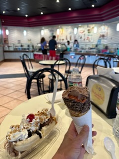 Stay on the path, but stray from the path, too. Build enough flexibility in your plan to be able to throw it all out and do something spontaneous. We had planned to go to Meramac Caverns, but after going up in the St. Louis Gateway Arch, we wanted to see it from the river, so we took a river cruise instead, then planned a different cavern the next day. We saw signs in Uranus, Missouri for the Uranus Fudge Factory, where they claim that “the best fudge comes from Uranus,” and the t-shirts were too inappropriate to pass up. We built in some iconic landmarks, some quirky stops, some experiences in nature, some retro diners and some ice-cream-for-dinner nights, some chain hotels and some back-in-the-day motels, a peak and a canyon. We wanted the sampler platter of America, and we savored every bite! We were early to bed and early to rise so we could take it all in and still have some energy to enjoy it all.