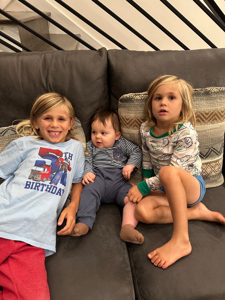 Then there’s River, who still wears his yellow and black Transformers robe every day. We got it for him for Christmas in 2023 with a little room to grow, and here he is in 2025, still rocking the robe. He’s usually leading every outdoor adventure and thinks like a scientist, always experimenting in the physics of things. He led the final pumpkin activity that happened all in the same day and was never planned – at least by me.