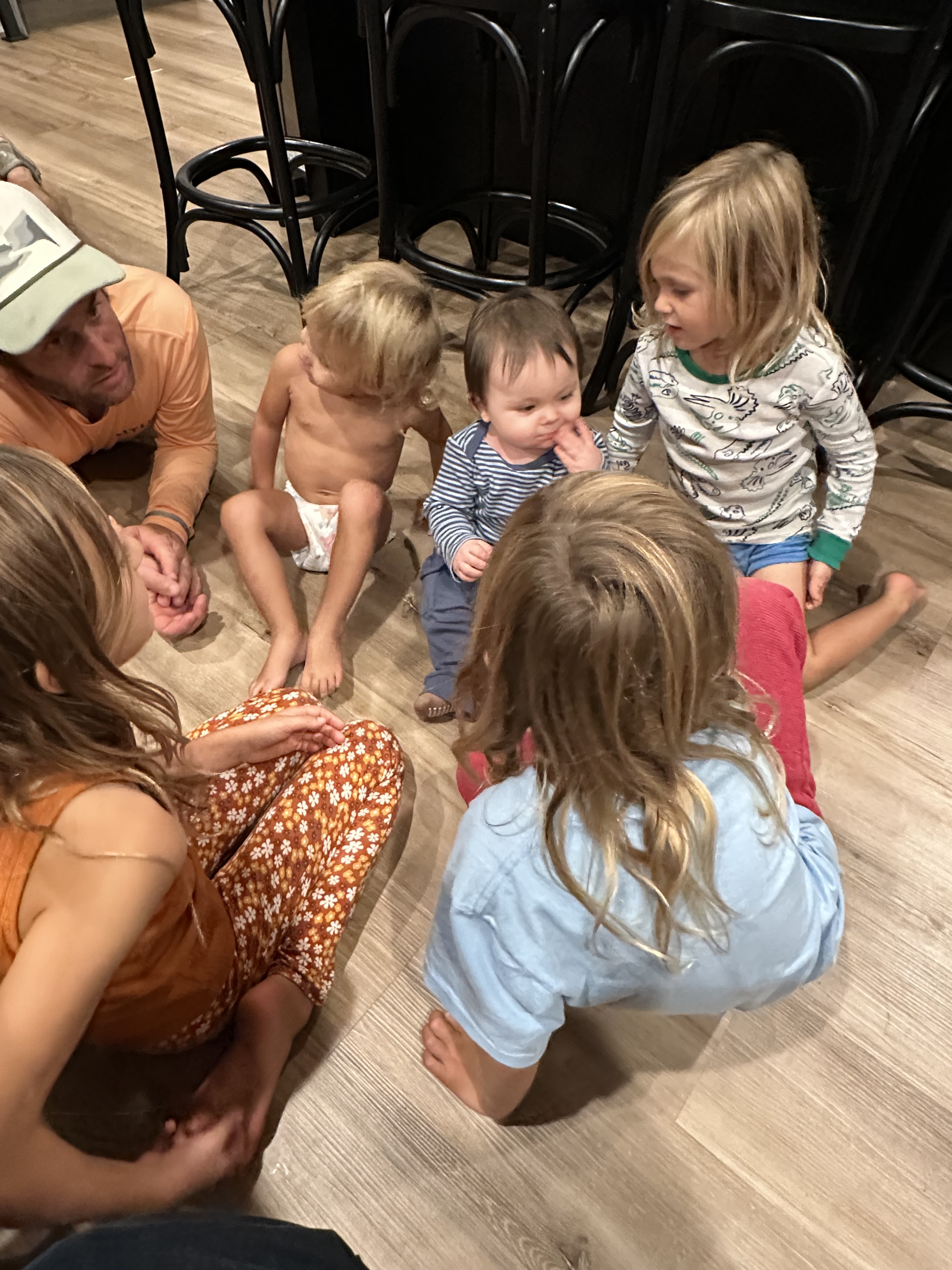 I was scared a kid would go tumbling down the hill next, but my instinct to holler for them to come back inside was quelled by my son, who reminded me that they are used to scaling mountains barefooted and all since their other grandparents have a mountain house they visit regularly and run just as wild there. “They’re okay. Let’s watch what happens,” he assured me.