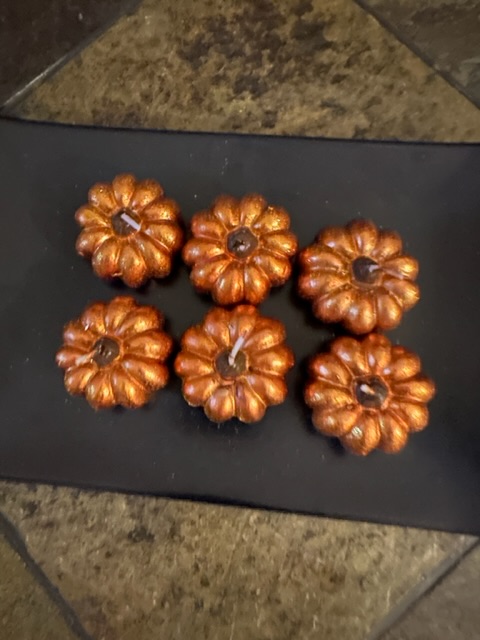 Posted on October 18, 2023six pumpkins six tiny tea lights coffee table candles bright pumpkin spice delight!
