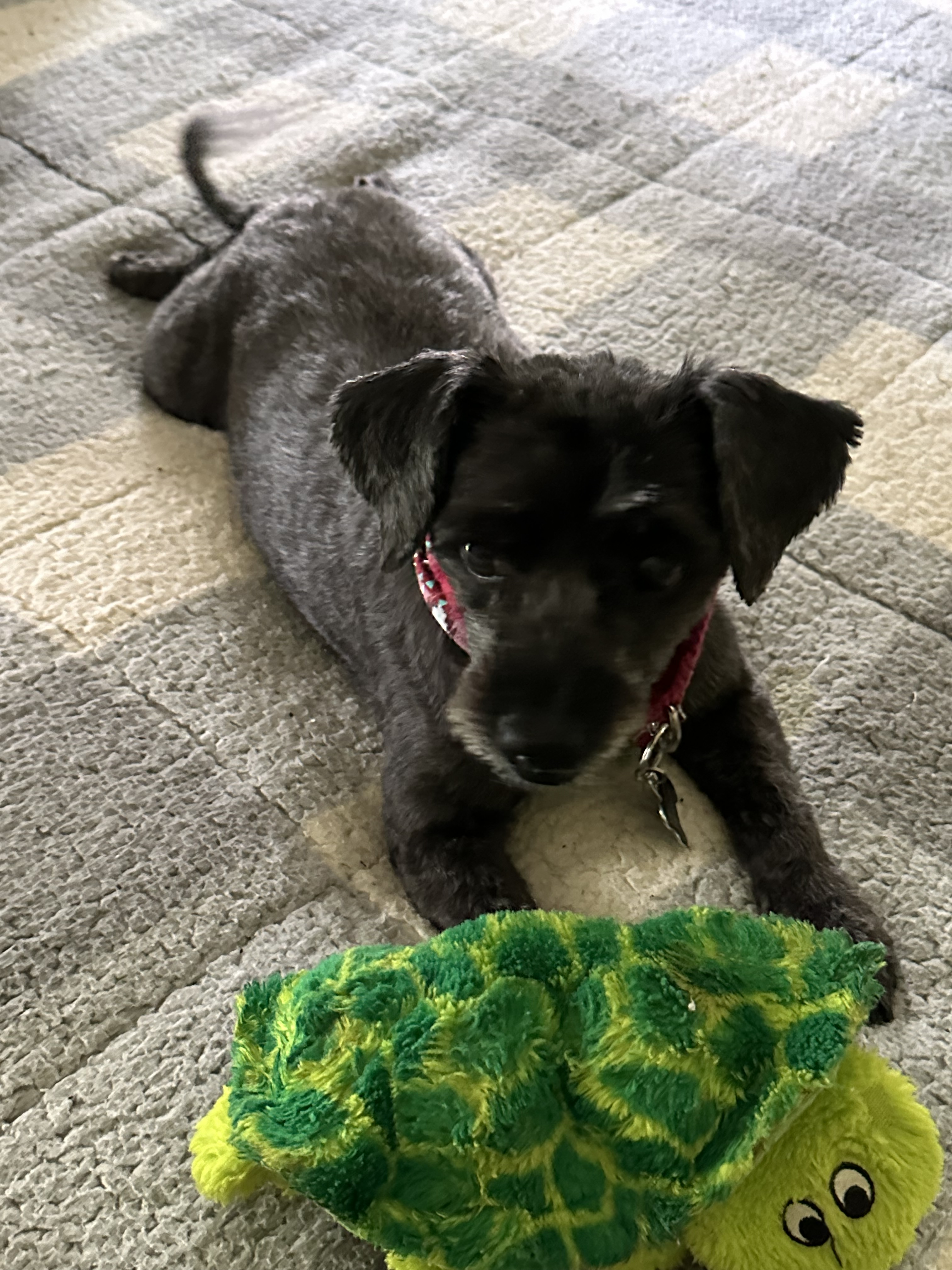 We have three schnoodles, all rescues, who came to us bruised and battered, scarred and scared.