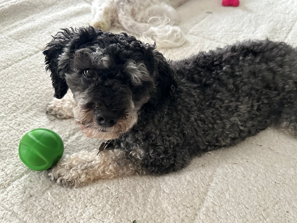 Which brings me to King. He was a young stray found on the streets of north Georgia, and he was supposed to be our girl. I’d put in a request with the rescue about a year prior to welcoming King, but the rescue called one day to let me know that they had a Schnoodle who met all the matching criteria as a good adoptee for us….except gender. I couldn’t resist the opportunity to meet this boy who needed a home but who had been turned down by two other families. It only took seconds. King was renamed Ollie for my favorite poet, Mary Oliver, and rode home with us that very day we’d hopped in the car for the 3 hour drive to meet him.