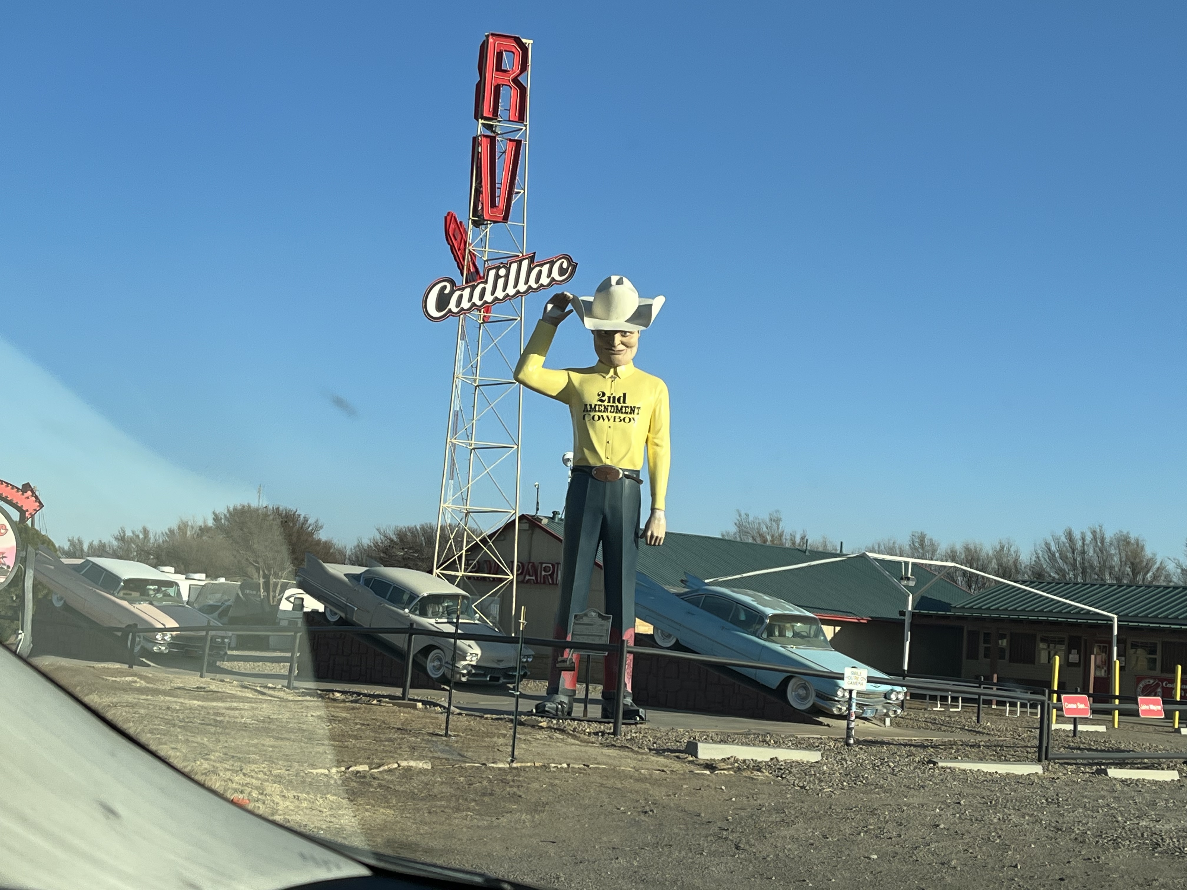 You can hear the wind of Texas here in this video of the buried spray-painted CadillacsWe’ll see this sign! We will travel into New Mexico as far as Albuquerque. We’ll come back later in the year to see this sign. We’re taking our trip at a slower pace and only traveling half of the Route 66 roads from Chicago to Albuquerque.